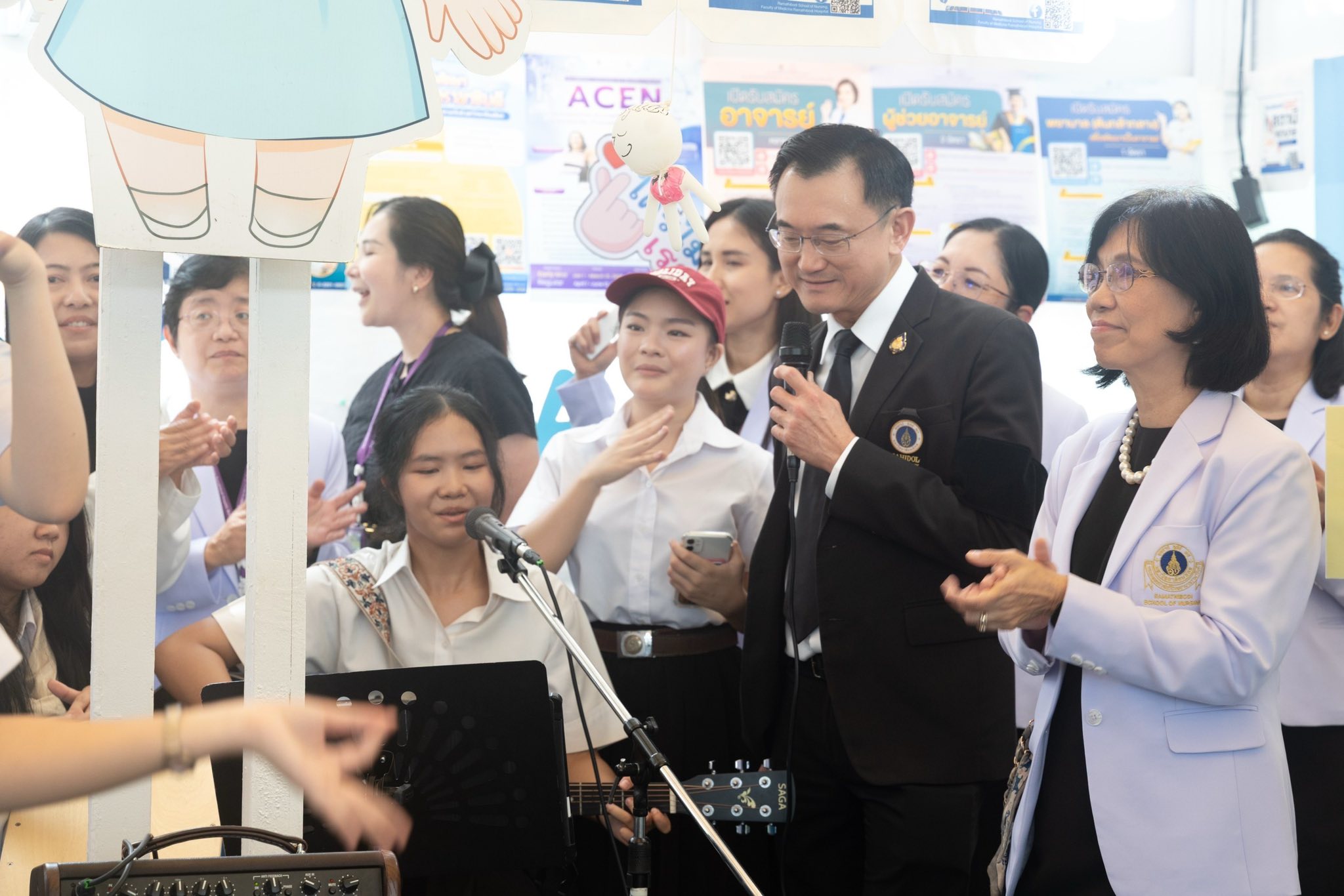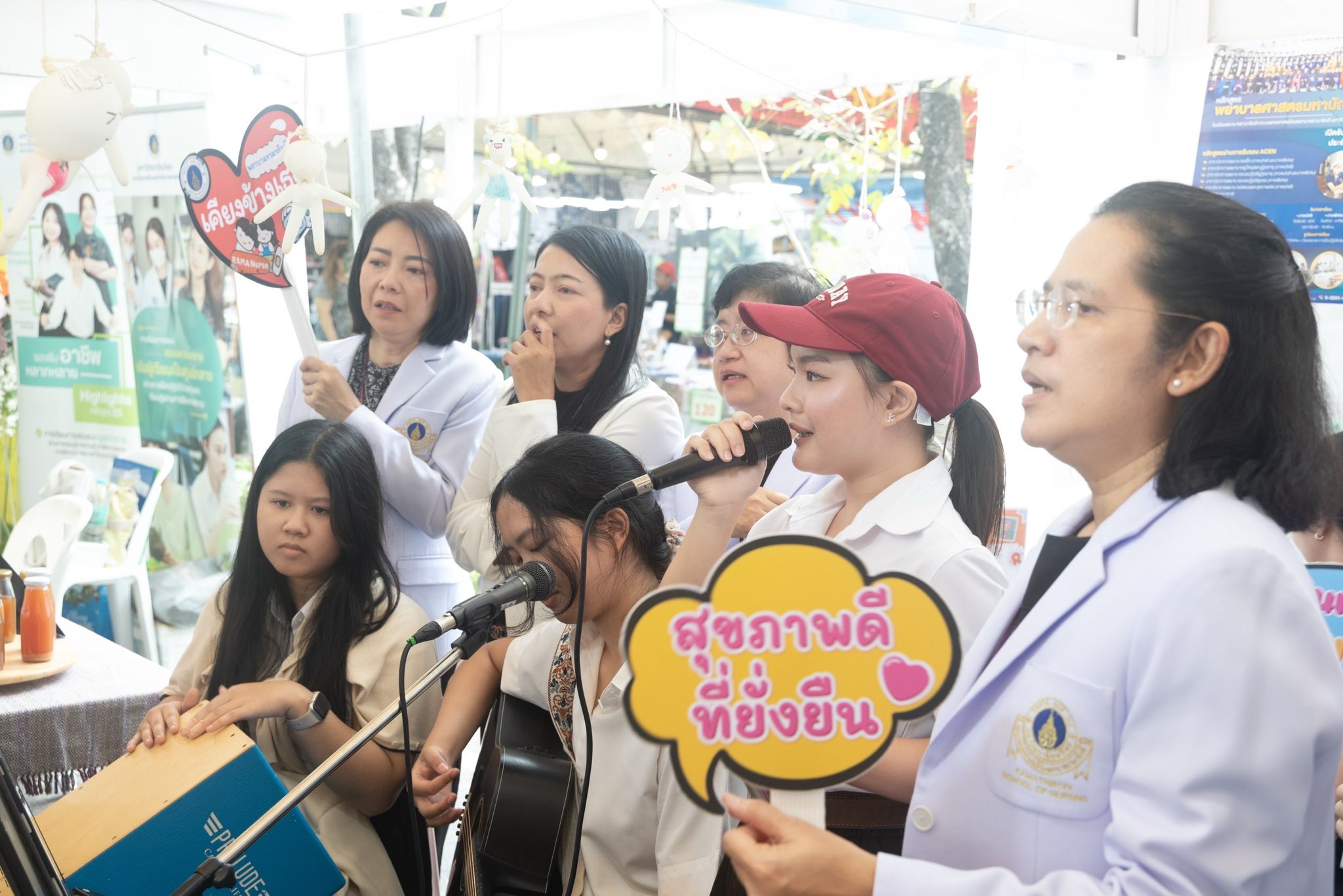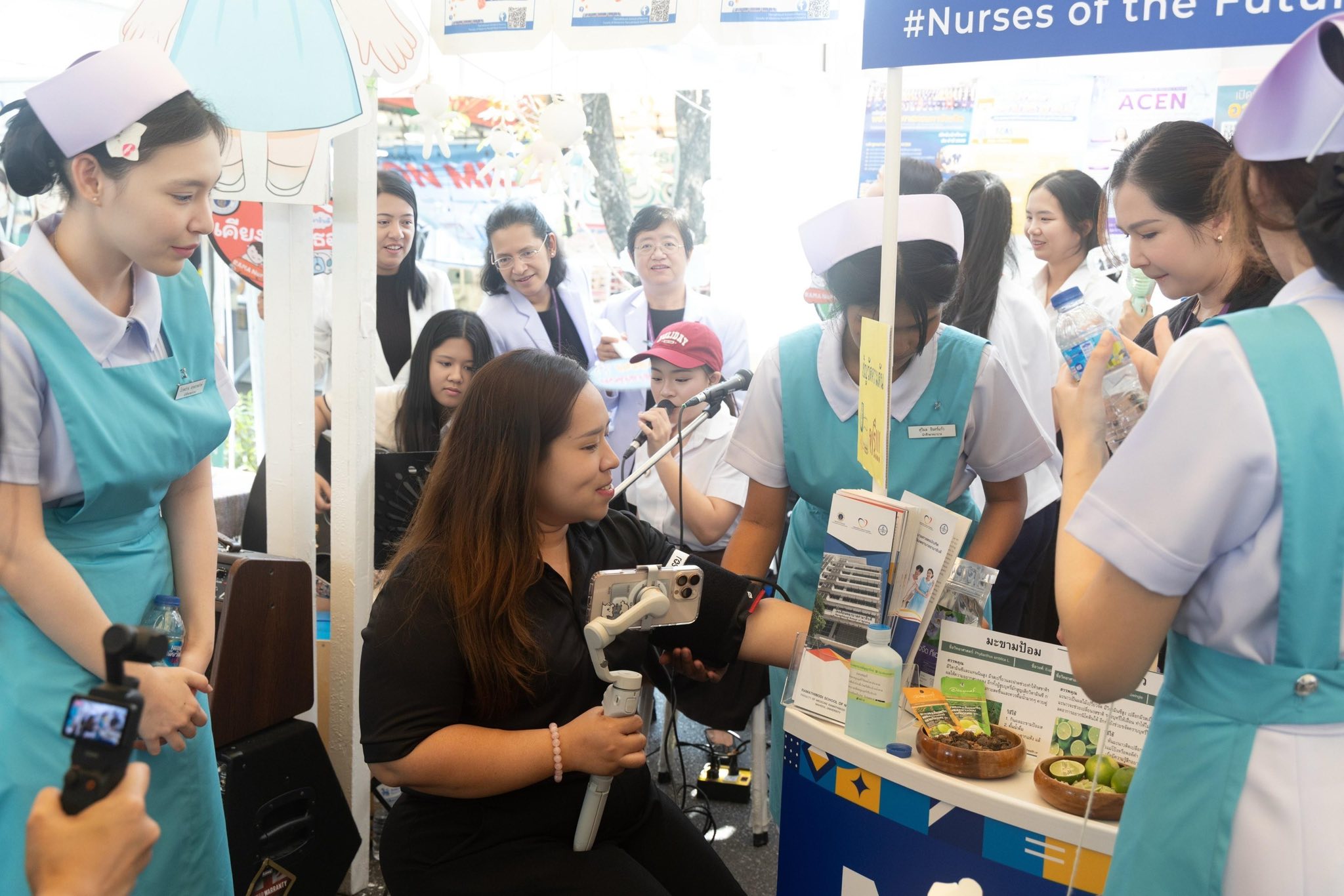 โดยมี อาจารย์ ดร.ศิริพร นิราพันธ์ อาจารย์ สาขาวิชาการพยาบาลเด็ก นำทีมนักศึกษาพยาบาลรามาธิบดี ชั้นปีที่ 1-2 ชมรมนักศึกษาพยาบาลรามาธิบดีสร้างสังคมปลอดบุหรี่ ชมรมเอี๊ยมฟ้าอาสารามาสัมพันธ์ ชมรมดนตรี และบุคลากรโรงเรียนพยาบาลรามาธิบดี ร่วมออกบูธให้คำแนะนำเกี่ยวกับหลักสูตรต่าง ๆ ข้อมูล TCAS69 เกณฑ์การรับสมัครเข้าศึกษาต่อโรงเรียนพยาบาลรามาธิบดี รวมทั้งจัดกิจกรรมเพื่อสุขภาพ ตรวจวัดความดัน จำหน่ายผลิตภัณฑ์และหนังสือความรู้สุขภาพ และกิจกรรมการแสดงดนตรีสดจากนักศึกษาพยาบาลรามาธิบดี