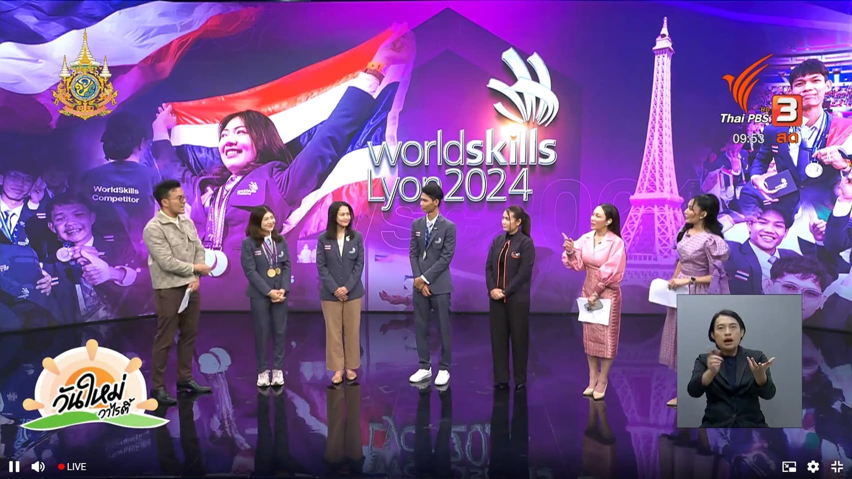 ตัวแทนเยาวชนของประเทศไทย ที่คว้ารางวัลชนะเลิศเหรียญทองอันดับหนึ่ง “Gold Medal” และรางวัล “Best of Nation” จากการแข่งขัน “WorldSkills Lyon 2024” เข้าร่วมรายการ “วันใหม่ วาไรตี้” ณ องค์การกระจายเสียงและแพร่ภาพสาธารณะแห่งประเทศไทย ไทยพีบีเอส (Thai PBS)