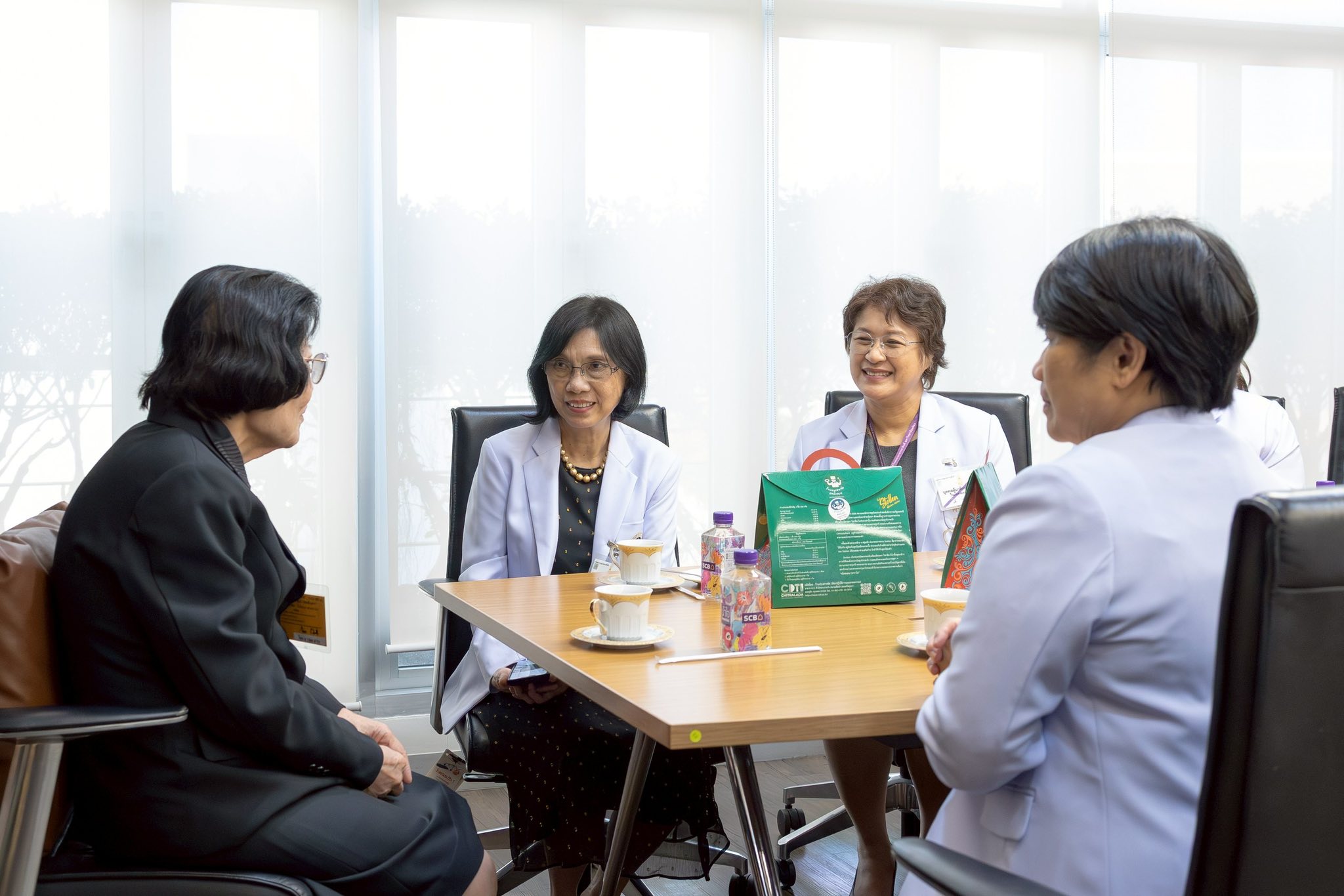 วันที่ 23 มกราคม 2569 รองศาสตราจารย์ ดร.พูลสุข เจนพานิชย์ วิสุทธิพันธ์ ผู้อำนวยการโรงเรียนพยาบาลรามาธิบดี พร้อมด้วย คณะผู้บริหาร หัวหน้าฝ่าย และหัวหน้างาน โรงเรียนพยาบาลรามาธิบดี คณะแพทยศาสตร์โรงพยาบาลรามาธิบดี มหาวิทยาลัยมหิดล เข้าสวัสดีปีใหม่ พร้อมรับคำอวยพร จาก รองศาสตราจารย์ ดร.คุณหญิงสุมณฑา พรหมบุญ อธิการบดี สถาบันเทคโนโลยีจิตรลดา และ คณะกรรมการอำนวยการโรงเรียนพยาบาลรามาธิบดี คณะแพทยศาสตร์โรงพยาบาลรามาธิบดี มหาวิทยาลัยมหิดล เนื่องในโอกาสวันขึ้นปีใหม่ 2569