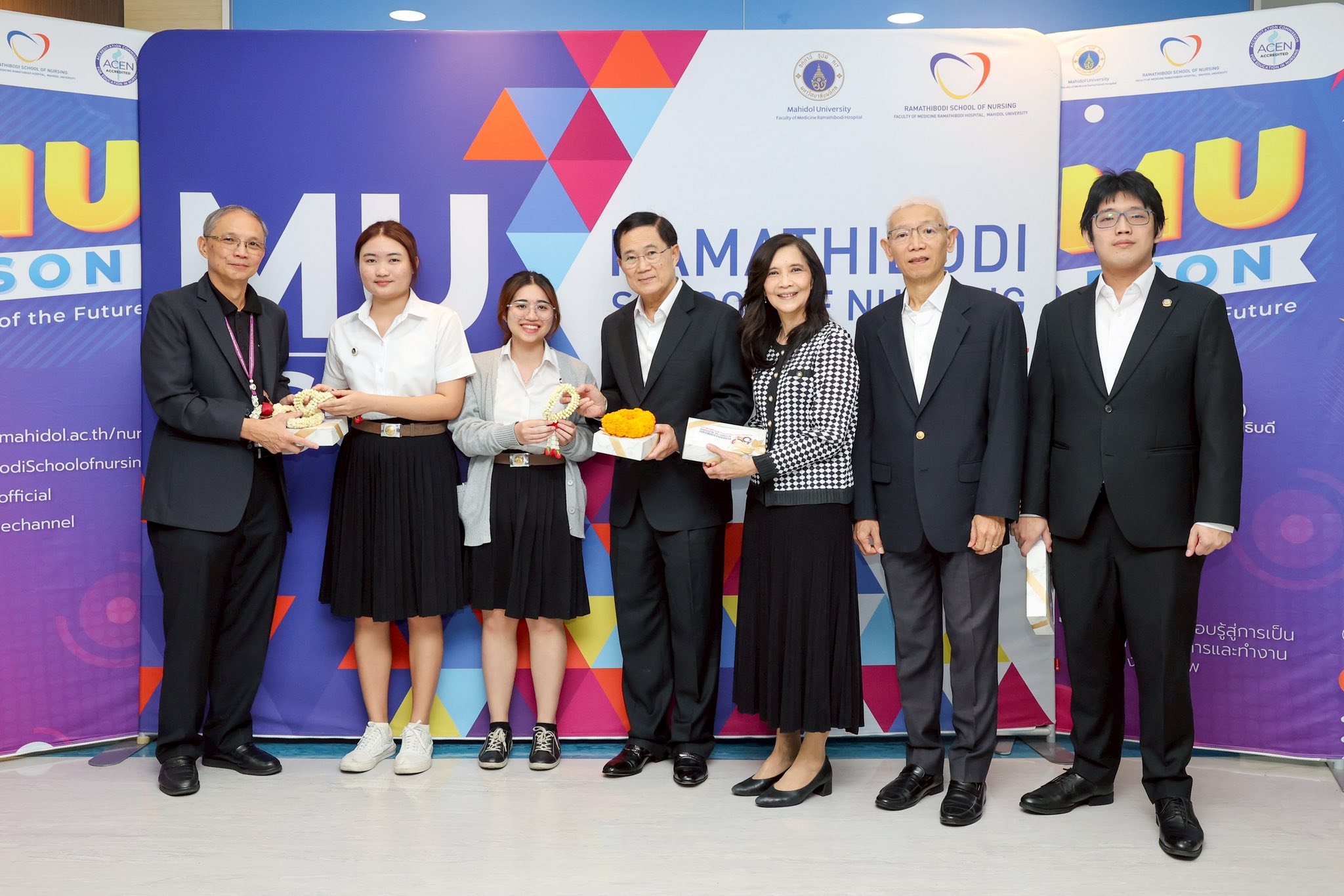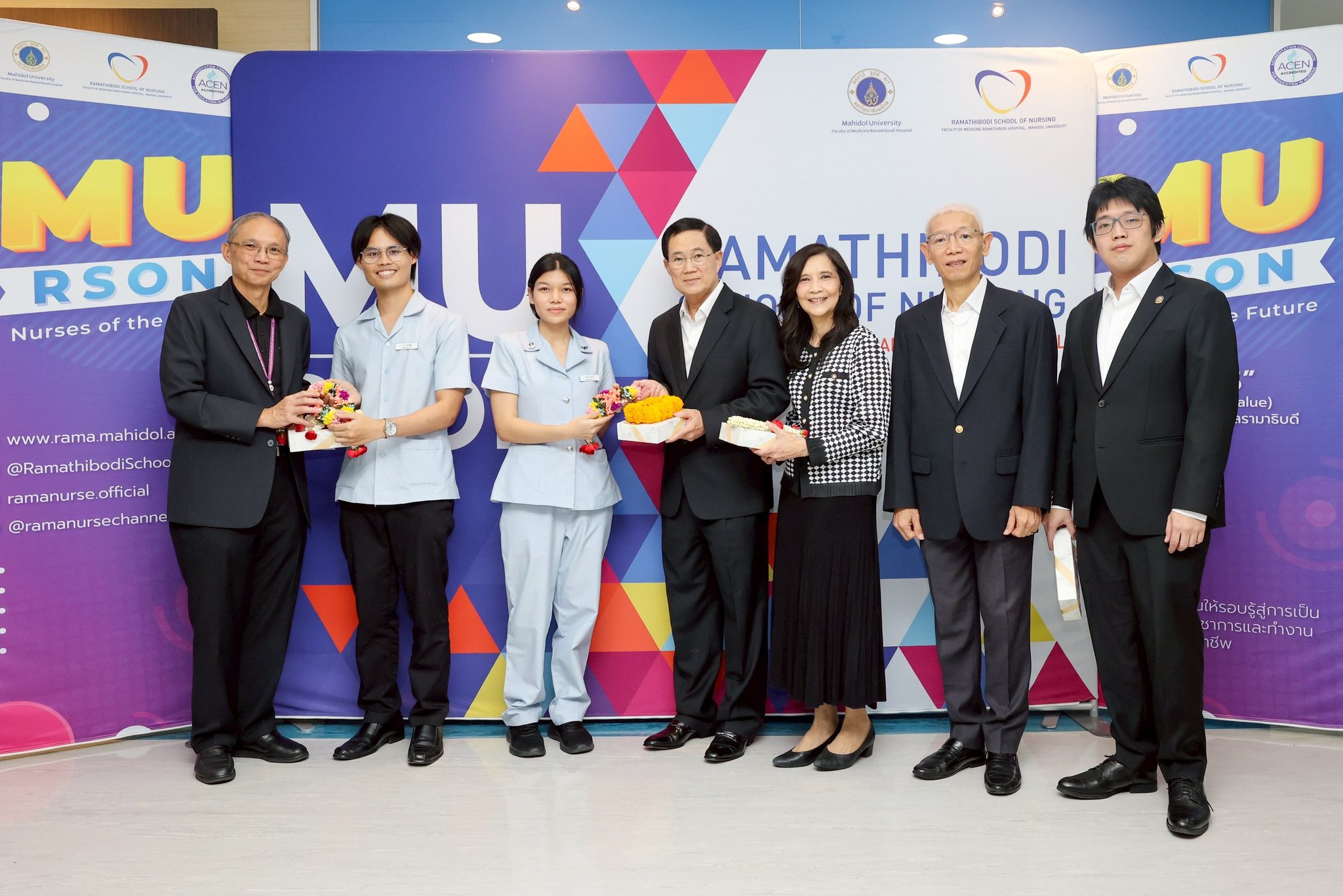 โดยมี ผู้ช่วยศาสตราจารย์ ดร.สุมลชาติ ดวงบุบผา รองผู้อำนวยการฯ ฝ่ายสนับสนุนการเรียนรู้และพัฒนาวิชาชีพการพยาบาล พร้อมด้วย รองศาสตราจารย์ ดร.พิชญ์ประอร ยังเจริญ รองผู้อำนวยการฯ ฝ่ายทรัพยากรบุคคลและศิลปวัฒนธรรม รองศาสตราจารย์ ดร.สุปรีดา มั่นคง รองผู้อำนวยการฯ ฝ่ายบัณฑิตศึกษา และผู้ช่วยศาสตราจารย์ ดร.องุ่น น้อยอุดม ผู้ช่วยผู้อำนวยการฯ ด้านกิจการนักศึกษา โรงเรียนพยาบาลรามาธิบดี คณะแพทยศาสตร์โรงพยาบาลรามาธิบดี มหาวิทยาลัยมหิดล ร่วมเป็นสักขีพยาน