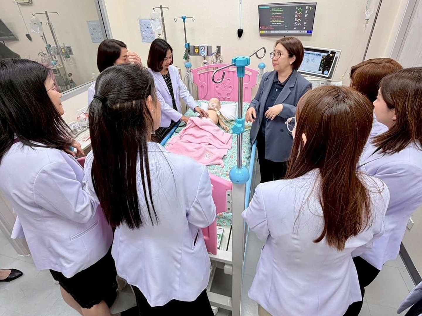 นอกจากนี้ ยังมีการแลกเปลี่ยนเรียนรู้ด้านนวัตกรรมการจัดการเรียนการสอน เพื่อเตรียมความพร้อมนักศึกษาก่อนขึ้นฝึกปฏิบัติงาน โดยครอบคลุมการแลกเปลี่ยนประสบการณ์ด้านการจัดการเรียนการสอนและระบบการประเมินสมรรถนะนักศึกษาในรายวิชาปฏิบัติการพยาบาลเด็กและวัยรุ่น การแลกเปลี่ยนเรียนรู้เกี่ยวกับ “ระบบการสอนภาคปฏิบัติทางคลินิก (Clinical Teaching) และระบบพี่เลี้ยงทางการพยาบาล (Preceptorship System)” รวมถึงกระบวนการจัดการเรียนการสอนภาคปฏิบัติที่บูรณาการการใช้เทคโนโลยีปัญญาประดิษฐ์ (AI) เพื่อเสริมสร้างคุณภาพการเรียนรู้และการพัฒนาศักยภาพของผู้เรียนในสภาพแวดล้อมทางคลินิก ตลอดจนการเยี่ยมชมพื้นที่การจัดการเรียนการสอนภาคปฏิบัติจริง และระบบสนับสนุนการเรียนรู้ทางคลินิกในการส่งเสริมสมรรถนะของผู้เรียน