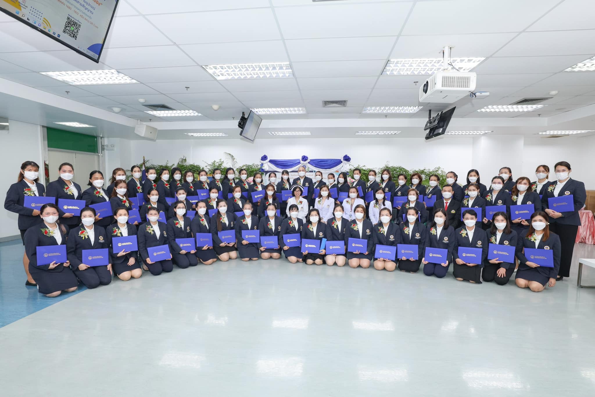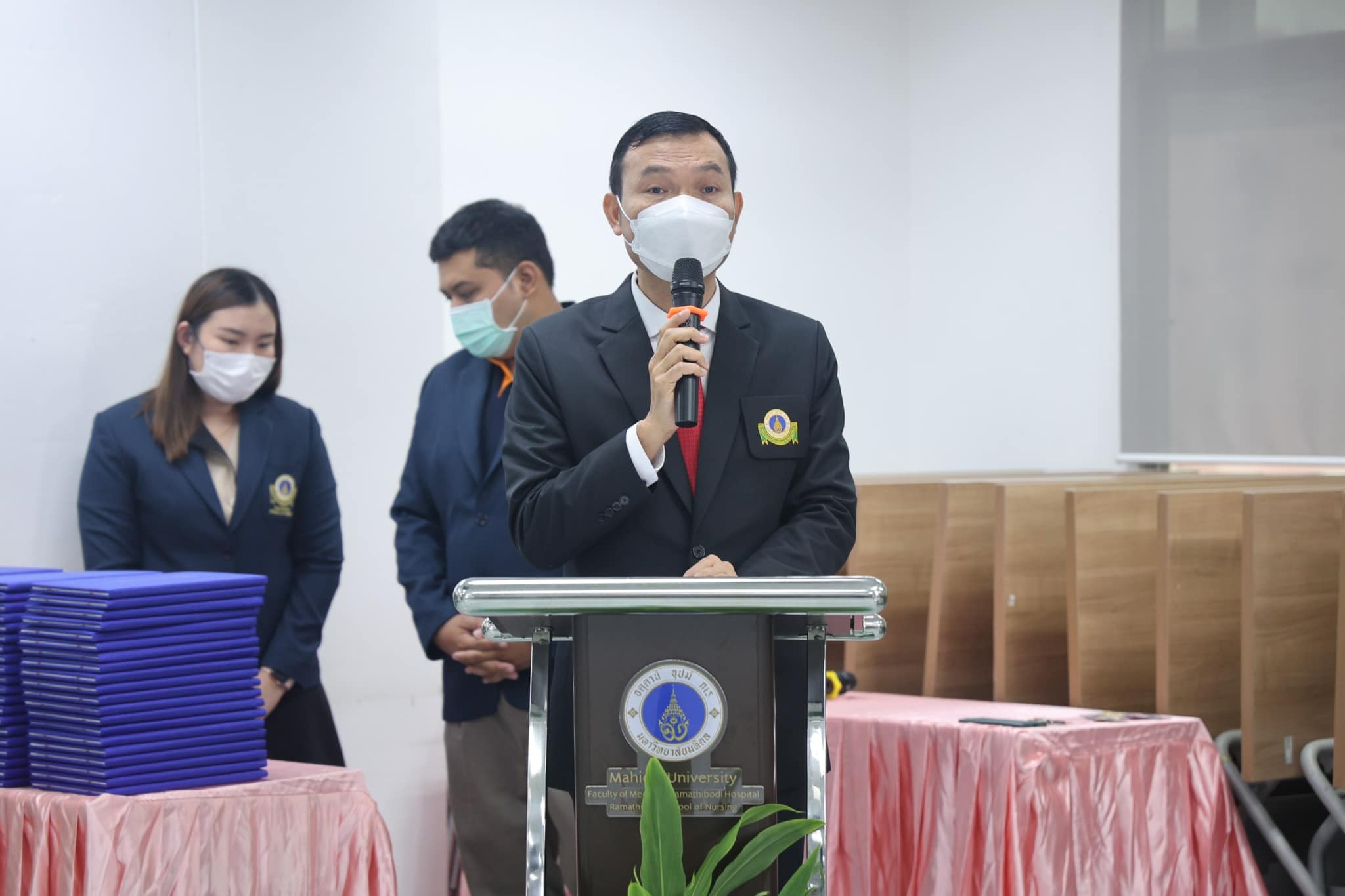 โดยมี รองศาสตราจารย์ ดร.พูลสุข เจนพานิชย์ วิสุทธิพันธ์ ผู้อำนวยการโรงเรียนพยาบาลรามาธิบดี เป็นประธานในพิธีพร้อมกล่าวให้โอวาทและมอบประกาศนียบัตร แก่ ผู้ที่สำเร็จการอบรม พร้อมด้วย ผู้ช่วยศาสตราจารย์ ดร.ปิยะวรรณ โภคพลากรณ์ ผู้ช่วยผู้อำนวยการโรงเรียนพยาบาลรามาธิบดี ด้านบริการวิชาการ กล่าวรายงาน อาจารย์ ดร.เสาวรส คงชีพ ประธานโครงการพัฒนาผู้บริหารระดับต้นทางการพยาบาล และ อาจารย์ ดร.จันทรา แก้วภักดี อาจารย์พยาบาล สาขาวิชาการพยาบาลสุขภาพชุมชน ร่วมกล่าวแสดงความยินดีในครั้งนี้ด้วย