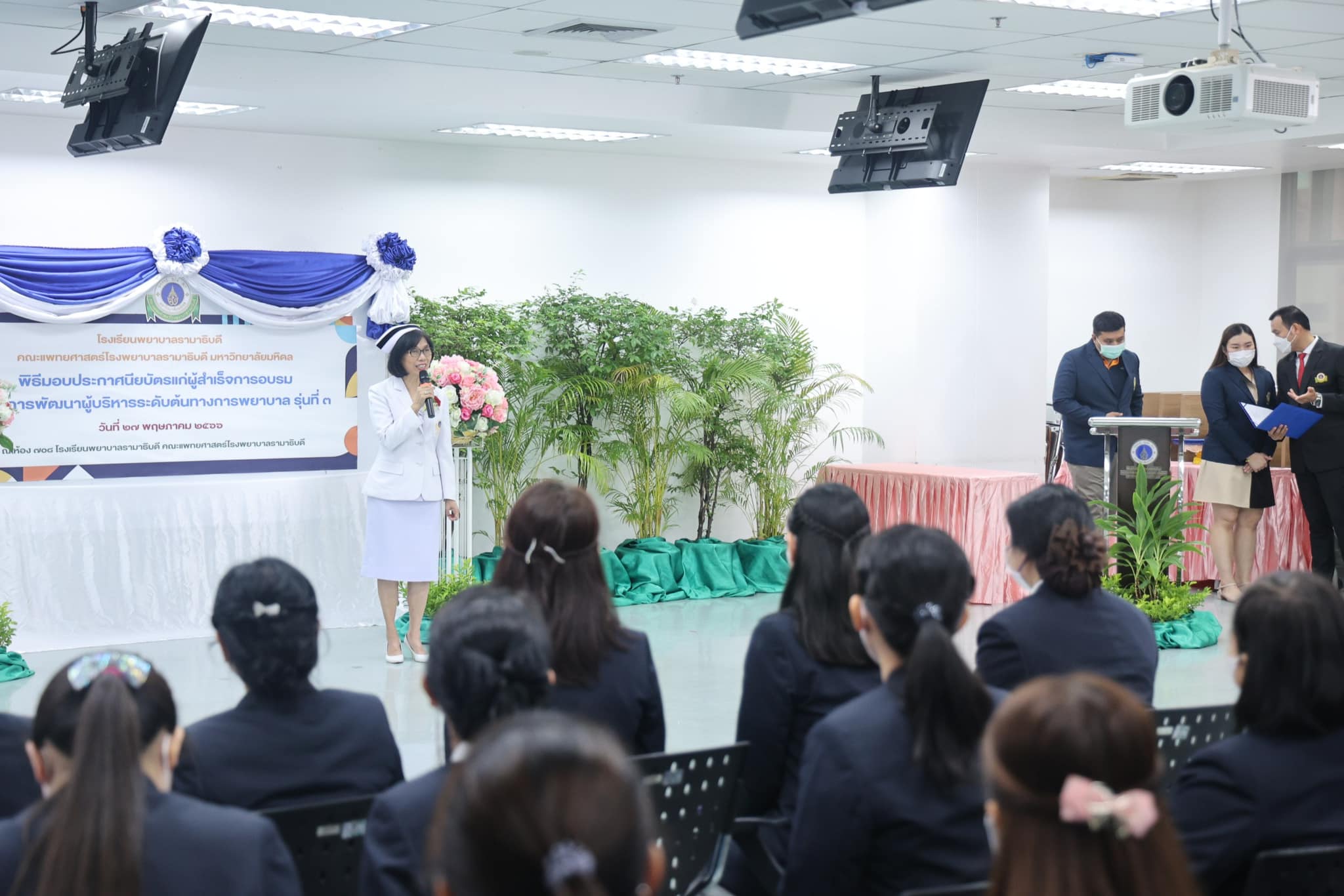 เมื่อวันที่ 27 พฤษภาคม 2566 โรงเรียนพยาบาลรามาธิบดี คณะแพทยศาสตร์โรงพยาบาลรามาธิบดี มหาวิทยาลัยมหิดล จัดพิธีมอบประกาศนียบัตร แก่ ผู้สำเร็จการอบรม โครงการพัฒนาผู้บริหารระดับต้นทางการพยาบาล รุ่นที่ 3 ประจำปี 2566