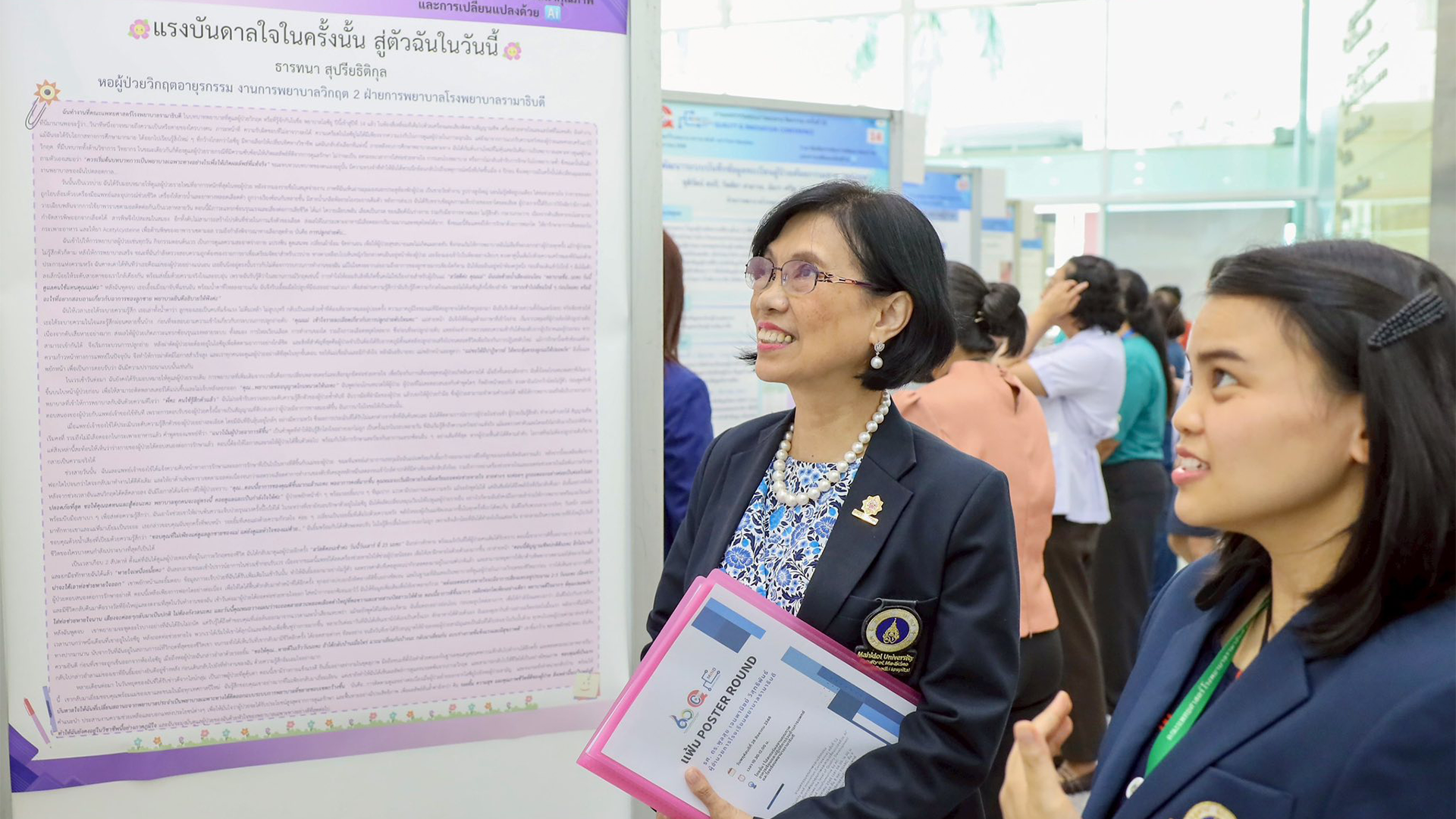 ทั้งนี้ ยังมีการนำเสนอผลงานในหลากหลายรูปแบบ อาทิ Dean’s Innovation, เรื่องเล่าเร้าพลัง CQI, VDO Clip และ R2R และการบรรยายในหัวข้อ “From Code to Care: Partnering AI and Medicine” โดยคณาจารย์ผู้เชี่ยวชาญจากคณะแพทยศาสตร์โรงพยาบาลรามาธิบดี มหาวิทยาลัยมหิดล และผู้ทรงคุณวุฒิจาก NECTEC ร่วมเป็นวิทยากร โดยมีผู้ร่วมวิพากษ์ผลงาน ได้แก่ รองศาสตราจารย์ ดร.พรรณวดี พุธวัฒนะ อดีตที่ปรึกษาโรงเรียนพยาบาลรามาธิบดี และอาจารย์ ดร.อภรชา ลำดับวงศ์ รองหัวหน้าสาขาวิชาการพยาบาลพื้นฐาน อีกด้วย