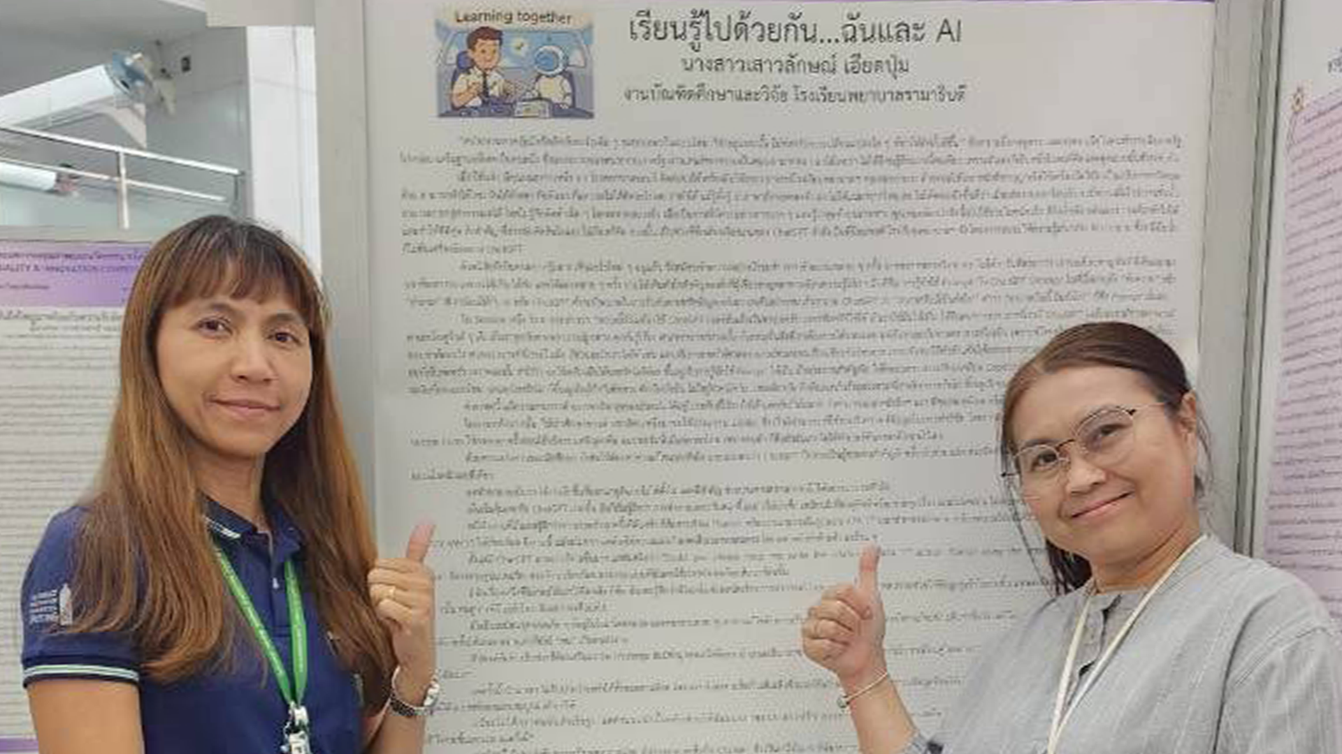 และนางสาวเสาวลักษณ์ เอียดปุ่ม เจ้าหน้าที่บริหารงานทั่วไป นำเสนอผลงานประเภท Paper Poster ในรูปแบบบทความเรื่องเล่าเร้าพลัง เรื่อง “เรียนรู้ไปด้วยกัน...ฉันและ AI” ซึ่งถือเป็นอีกหนึ่งความภาคภูมิใจของบุคลากรในด้านการพัฒนานวัตกรรมการเรียนรู้ด้วยเทคโนโลยี AI