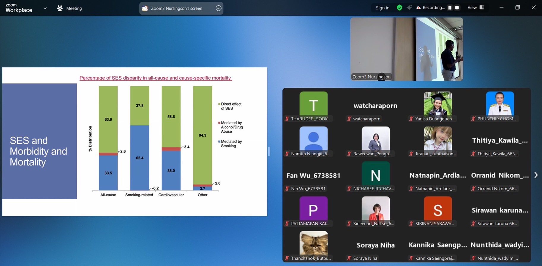 ในโอกาสนี้ นักวิชาการอาคันตุกะ Prof. Alicia K. Matthews, PhD, MS, BS, LCP, Professor of Behavioral Sciences (in Nursing) จาก Columbia University School of Nursing มหาวิทยาลัยโคลัมเบีย กรุงนิวยอร์ก ประเทศสหรัฐอเมริกา ให้เกียรติเป็นวิทยากรบรรยาย โดยมี คณาจารย์โรงเรียนพยาบาลรามาธิบดี นักศึกษาระดับบัณฑิตศึกษา และฝ่ายการพยาบาล โรงพยาบาลรามาธิบดี เข้าร่วมรับฟังการบรรยายในครั้งนี้