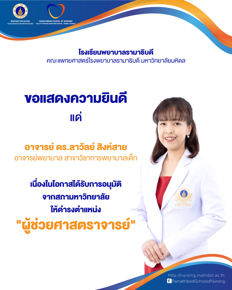 ขอแสดงความยินดี แด่ อาจารย์ ดร. ลาวัลย์ สิงห์สาย อาจารย์พยาบาล สาขาวิชาการพยาบาลเด็ก