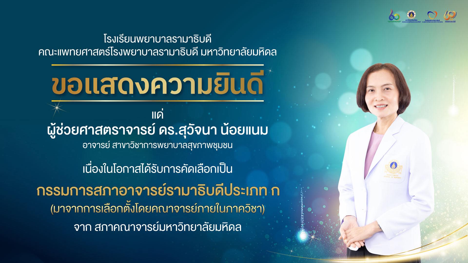 ขอแสดงความยินดี แด่ ผู้ช่วยศาสตราจารย์ ดร.สุวัจนา น้อยแนม อาจารย์สาขาวิชาการพยาบาลสุขภาพชุมชน