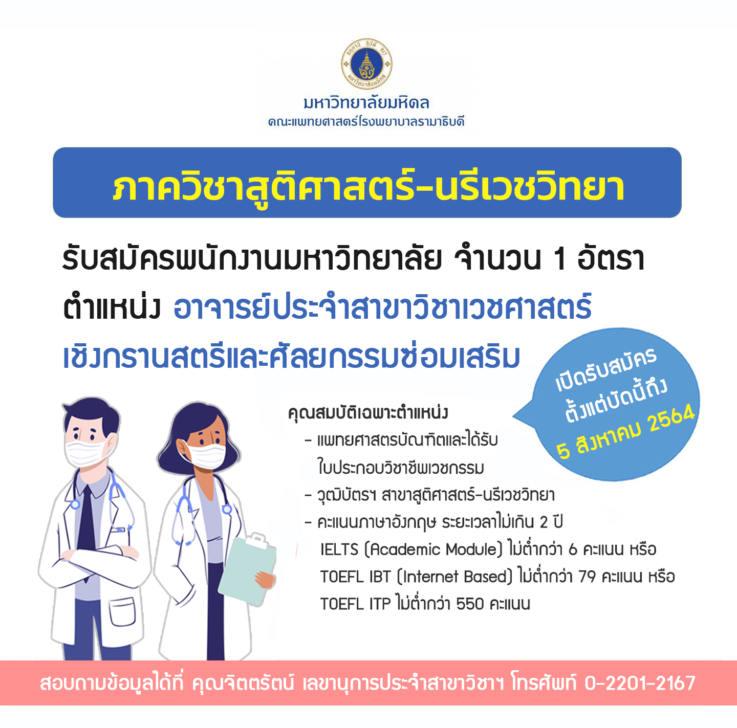 สาขาวิชาเวชศาสตร์เชิงกรานสตรีและศัลยกรรมซ่อมเสริม รับสมัครอาจารย์แพทย์