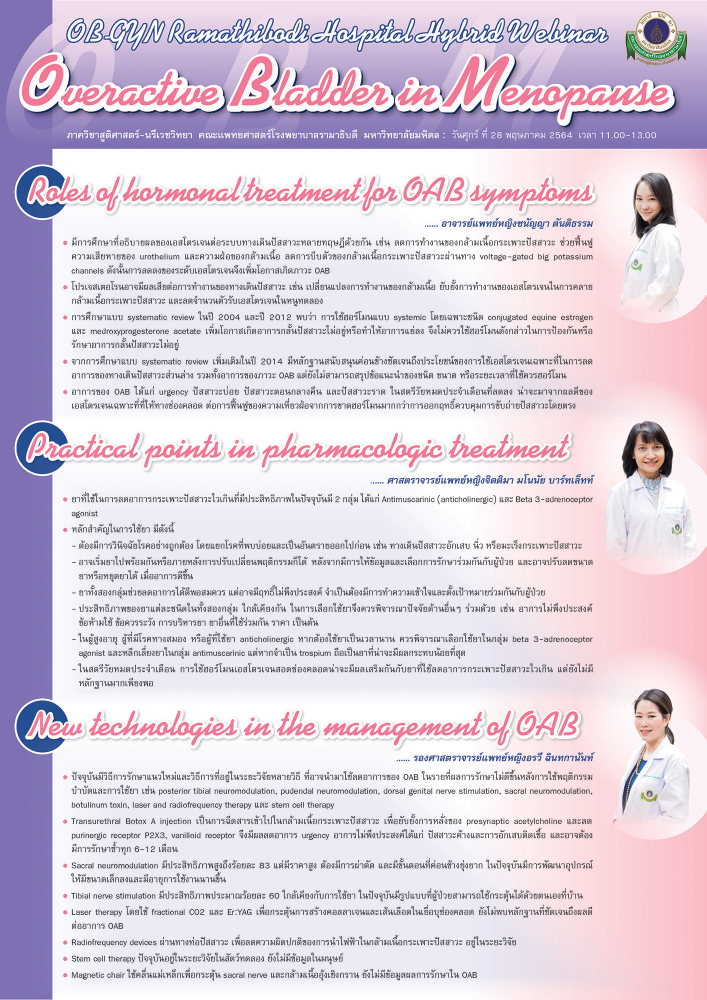 รายงานสรุปการประชุม OB-GYN webinar "Overactive Bladder in Menopause"