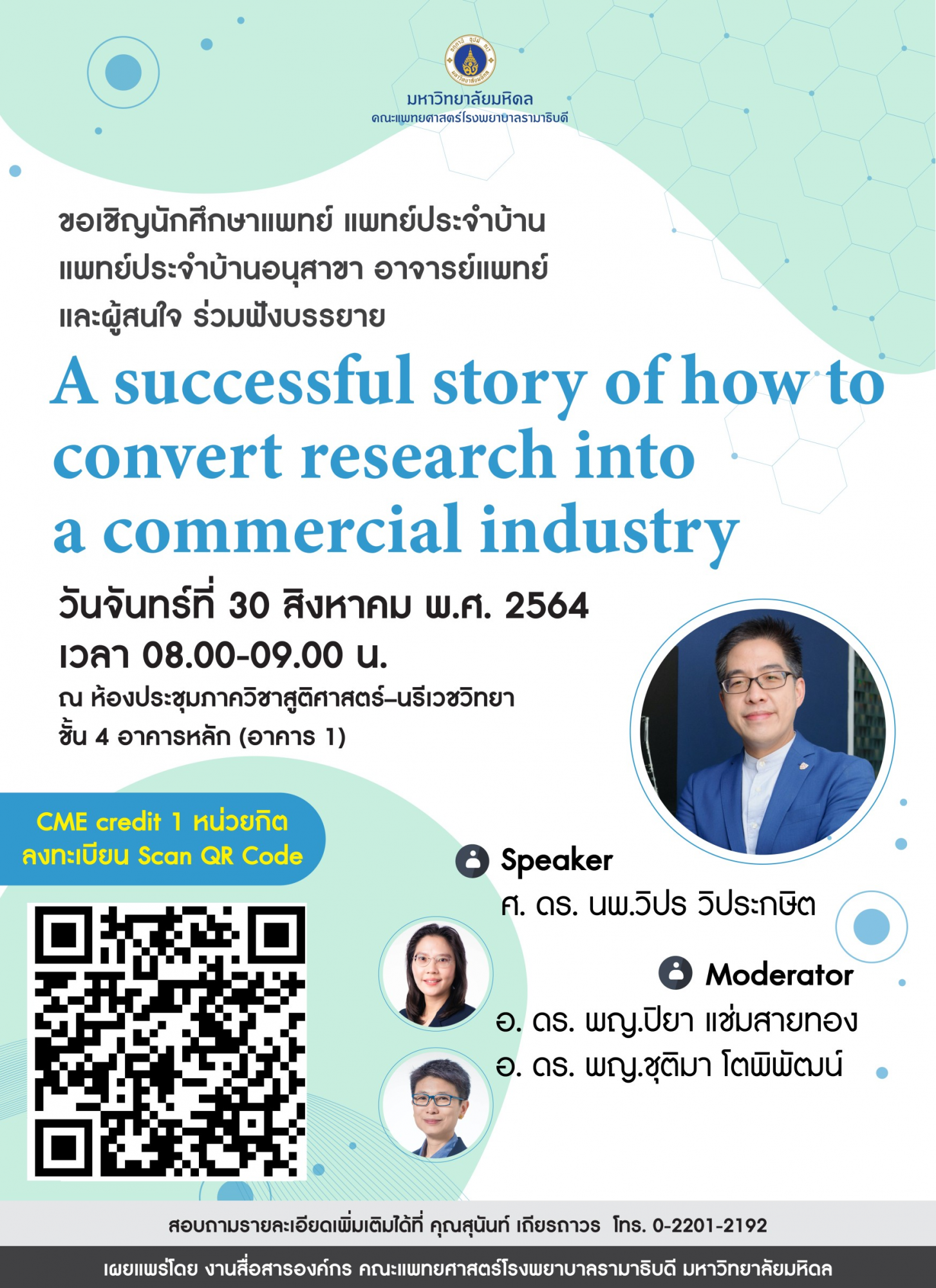 ขอเชิญร่วมฟังบรรยาย A successful story of how to convert research into a commercial industry