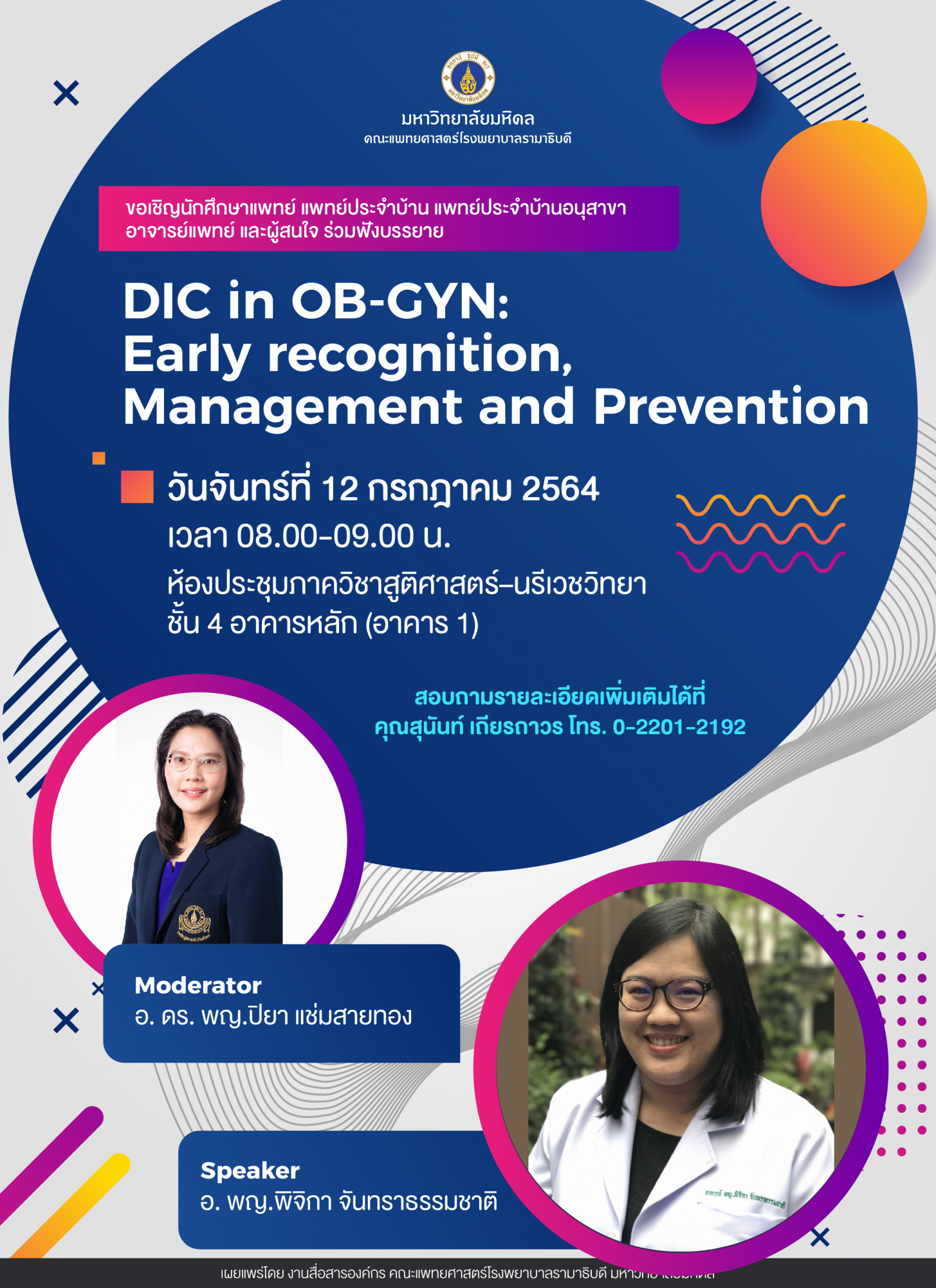 ขอเชิญร่วมฟังบรรยาย DIC in OB-GYN: Early recognition, Management and Prevention