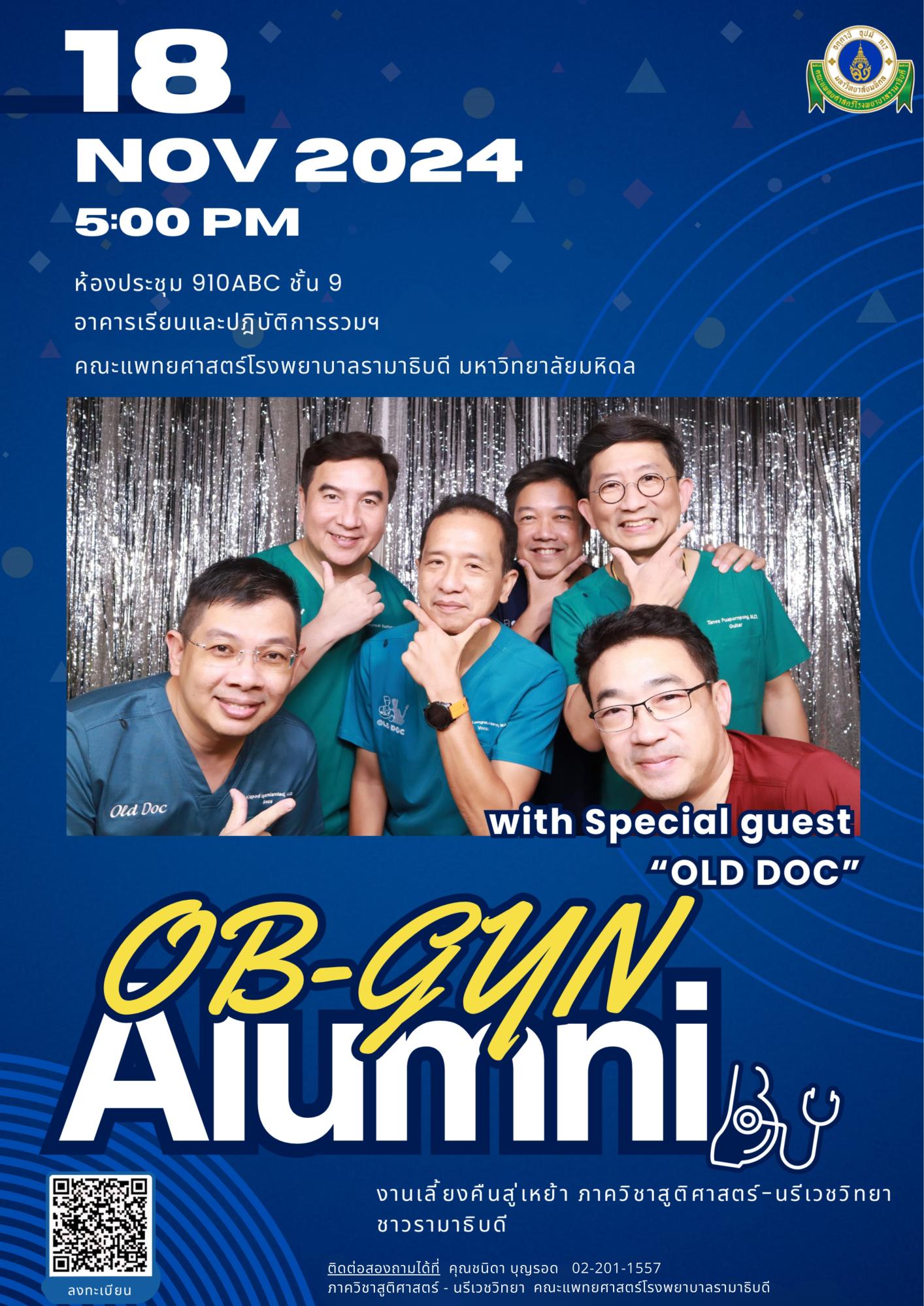 ภาควิชาสูติศาสตร์-นรีเวชวิทยา คณะแพทยศาสตร์โรงพยาบาลรามาธิบดี ขอเชิญคณาจารย์ ศิษย์เก่า ศิษย์ปัจจุบัน ทุกท่านร่วมงาน