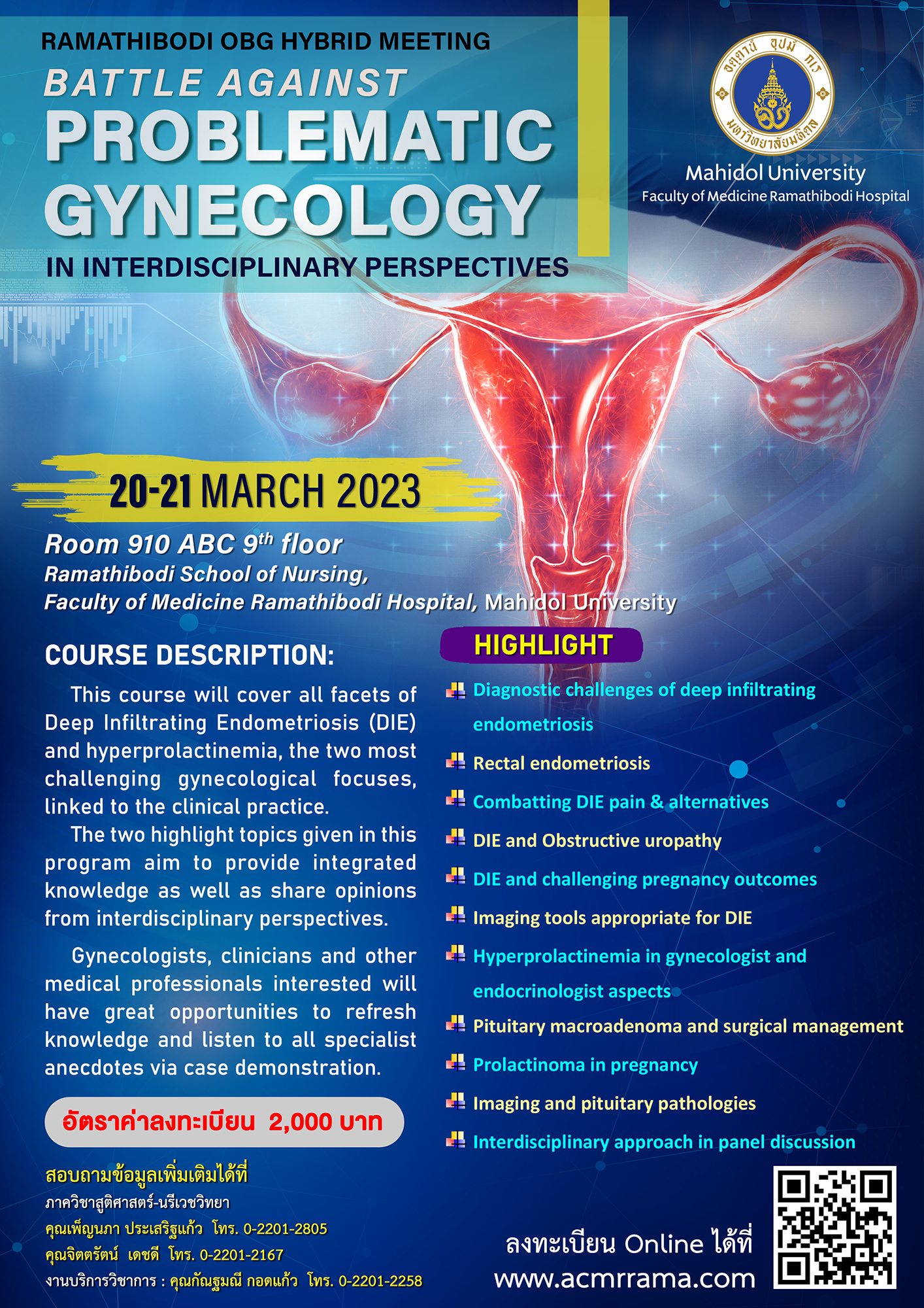 ขอเชิญร่วมงานประชุม RAMATHIBODI OBG HYBRID MEETING "BATTLE AGAINST PROBLEMATIC GYNECOLOGY IN INTERDISCIPLINARY PERSPECTIVES"