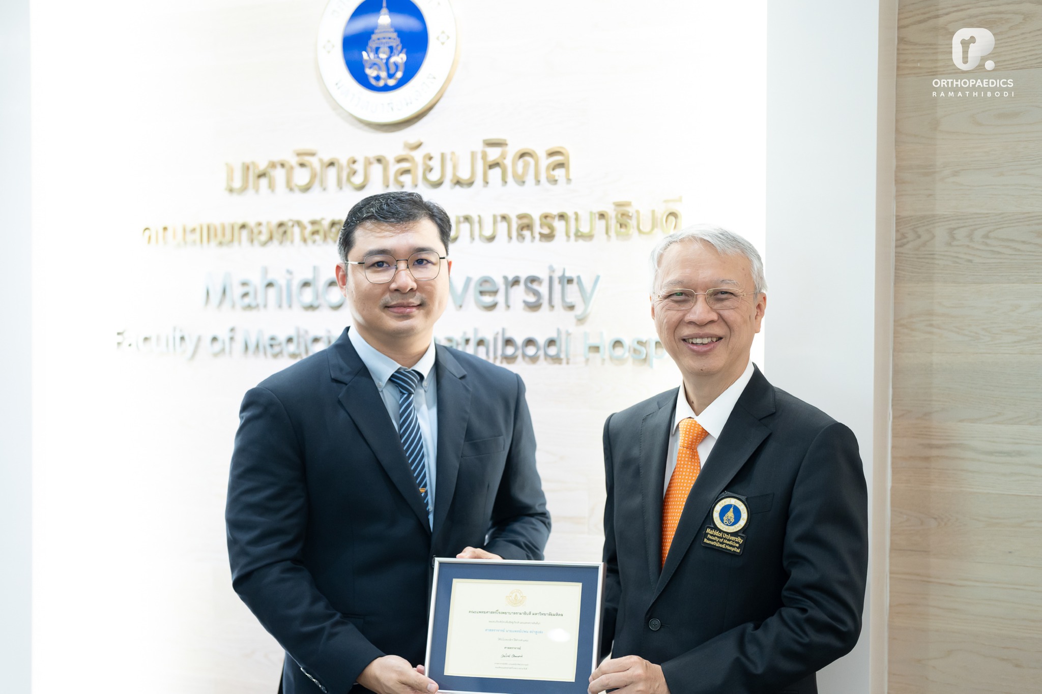 วันที่ 17 กรกฎาคม 2568 - ภาควิชาออร์โธปิดิกส์ ขอแสดงความยินดีกับ ศาสตราจารย์ นายแพทย์ปพน สง่าสูงส่ง เนื่องในโอกาสได้รับโปรดเกล้าให้ดำรงตำแหน่ง ศาสตราจารย์ สาขาวิชาออร์โธปิดิกส์ โดยเมื่อวันที่ 9 ก.ค. 2568 ศาสตราจารย์ นายแพทย์ปิยะมิตร ศรีธรา อธิการบดี มหาวิทยาลัยมหิดล พร้อมคณะผู้บริหาร ร่วมแสดงความยินดี ณ สำนักงานอธิการบดี ม.มหิดล ศาลายา และวันที่ 17 ก.ค. 2568 ศาสตราจารย์คลินิก นายแพทย์อาทิตย์ อังกานนท์ คณบดีคณะแพทยศาสตร์โรงพยาบาลรามาธิบดี มอบเกียรติบัตรเชิดชูเกียรติ ณ ณ สำนักงานคณบดี อาคารบริหาร