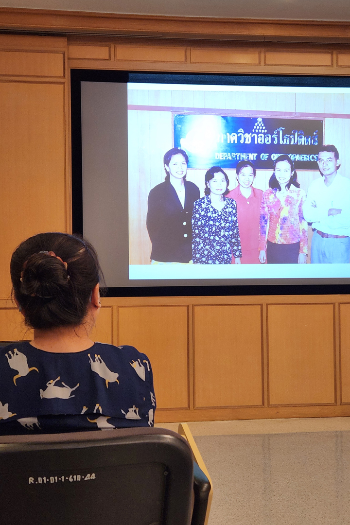 ภาควิชาออร์โธปิดิกส์ งานมุทิตาจิตเกษียณอายุราชการ นางสาวศศิธร พึ่งโพธิ์สภ(พี่เอ๋) หัวหน้างานบริหารทั่วไปและธุรการภาควิชาออร์โธปิดิกส์ โดยมี รองศาสตราจารย์ นายแพทย์ธันย์ สุภัทรพันธุ์ อดีตหัวหน้าภาควิชาออร์โธปิดิกส์ กล่าวขอบคุณสำหรับการทำงาน อุทิตตนให้ภาควิชาออร์โธปิดิกส์ตลอดมามากกว่า 38 ปี พร้อมอวยพรและมอบของที่ระลึก ทั้งนี้โดยมี รองศาสตราจารย์ นายแพทย์พงศธร ฉันท์พลากร หัวหน้าภาควิชาออร์โธปิดิกส์ร่วมขอบคุณด้วย ทั้งนี้เจ้าหน้าที่ในหน่วยงานภาควิชาออร์โธปิดิกส์ร่วมงานดังกล่าวถ่ายรูปเป็นที่ระลึก
