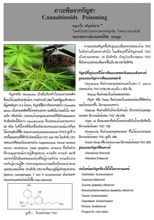 POISON & DRUG INFORMATION BULLETIN เนื้อหาในฉบับนี้ : ภาวะพิษจากกัญชา ToxCase Conference : พิษจากน้ำยางสลัดได Party Drugs: The New Epidemic - A Review คลิกที่นี่เพื่ออ่านเนื้อหาทั้งหมด