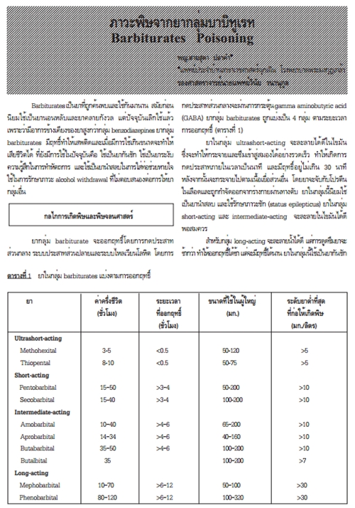 POISON & DRUG INFORMATION BULLETIN เนื้อหาในฉบับนี้ : ภาวะพิษจากยากลุ่มบาบิทูเรท ToxCase Conference : พิษจากเมล็ดสบู่ดำ Disulfiram Toxicity คลิกที่นี่เพื่ออ่านเนื้อหาทั้งหมด