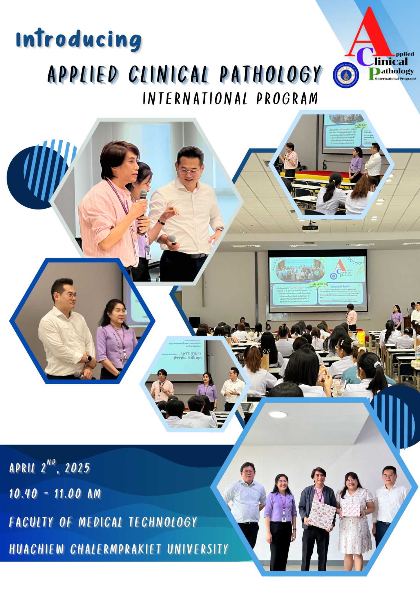 Assoc. Prof. Dr. Putthapoom Lumjiaktase, along with Assoc. Prof. Dr. Teerapong Siriboonpiputtana and Assoc. Prof. Dr. Apichaya Puangpetch, visited the Faculty of Medical Technology, Huachiew Chalermprakiet University, to promote the Applied Clinical Pathology program. They provided academic guidance and information about further study opportunities in the program.