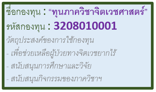 ขอเชิญร่วมบริจาคเงิน เข้ามูลนิธิรามาธิบดี ในกองทุนภาควิชาจิตเวชศาสตร์
