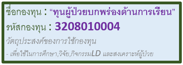- กองทุน "เพื่อการศึกษาสาขาจิตเวชศาสตร์เด็กและวัยรุ่น" (กรุณาคลิ๊ก)