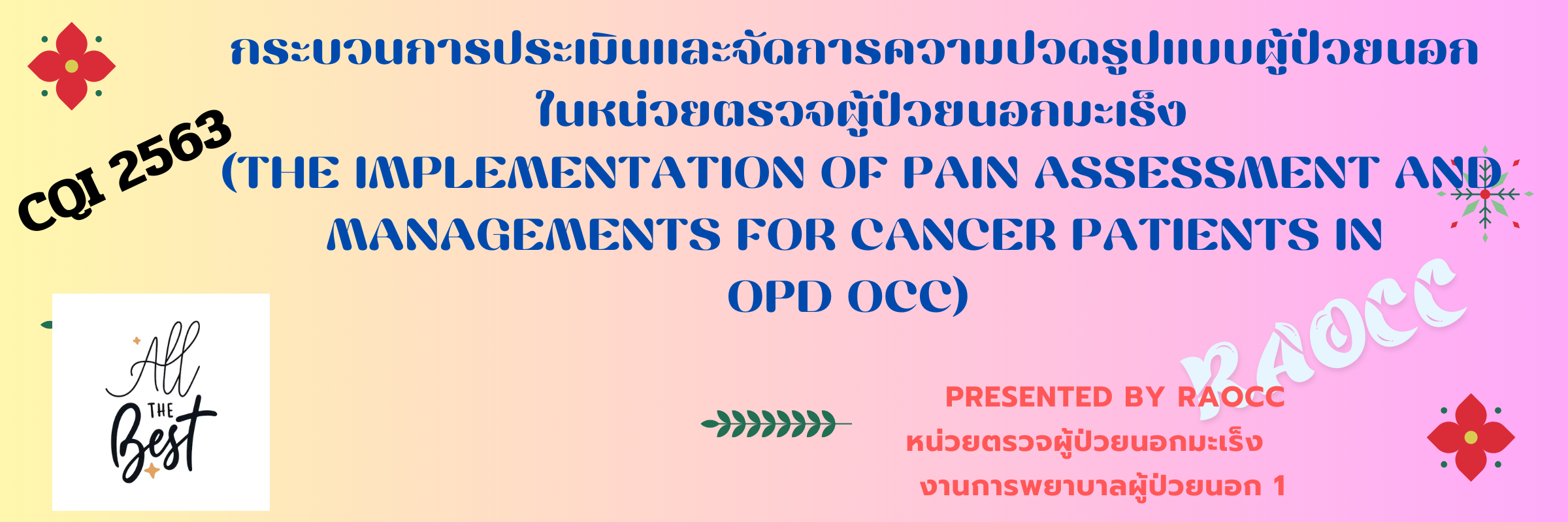 กระบวนการประเมินและจัดการความปวดรูปแบบผู้ป่วยนอก ในหน่วยตรวจผู้ป่วยนอกมะเร็ง (The implementation of pain assessment and managements for cancer patients in OPD OCC)