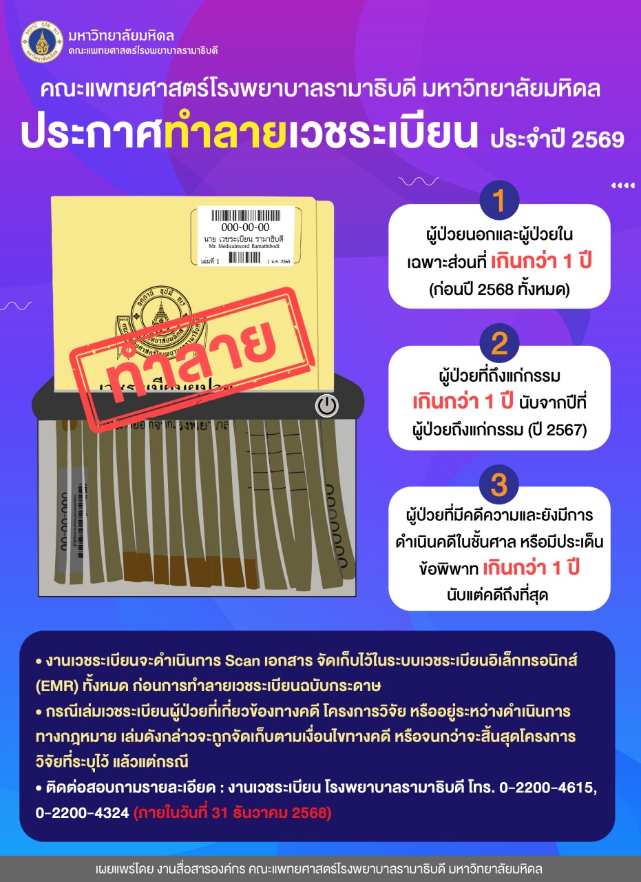 ประกาศทำลายเวชระเบียน ประจำปี 2569