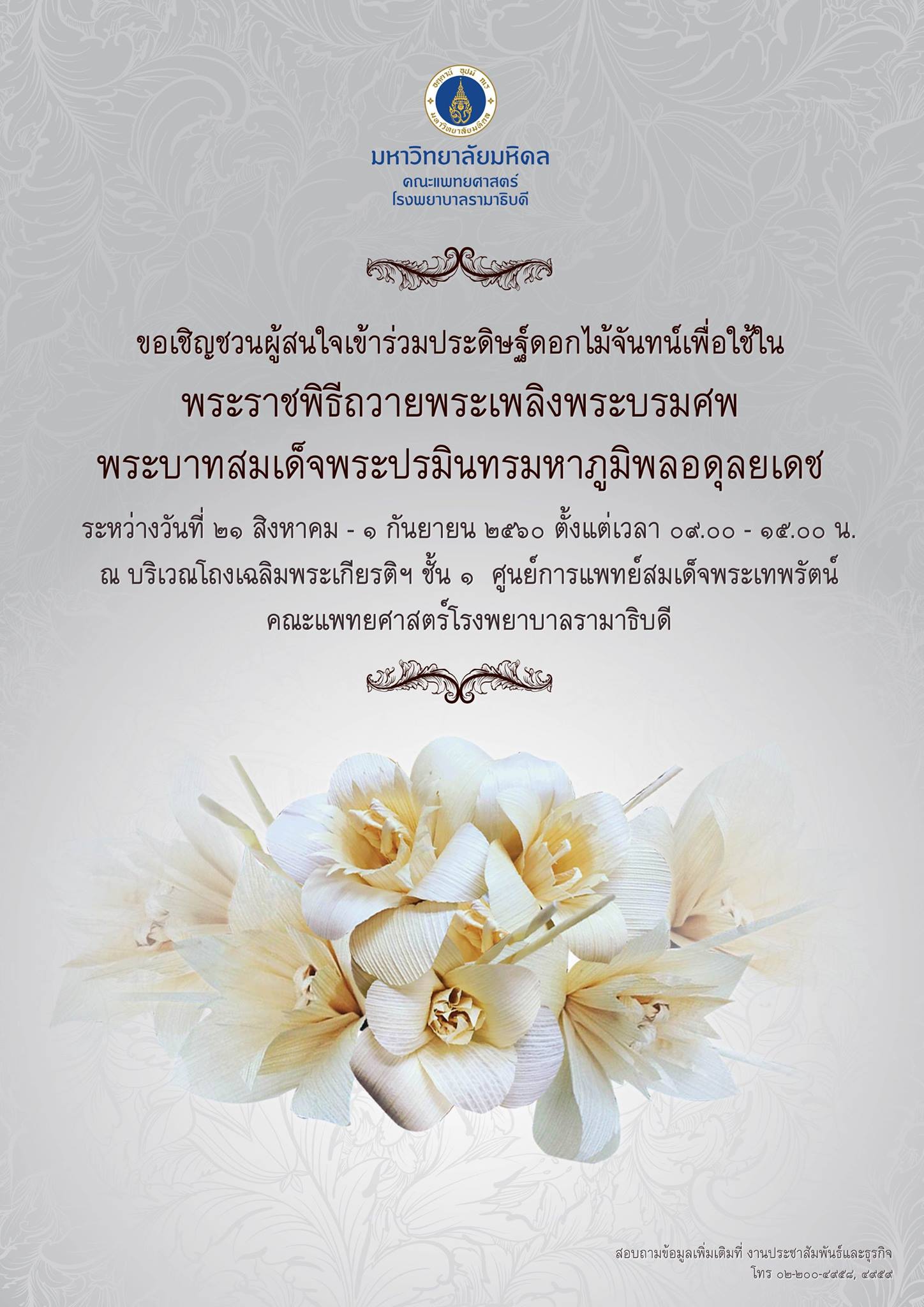 ในวันอังคารที่ 22 สิงหาคม 2560 เวลา 13.00 – 15.00 น. ณ โถงพระราชบิดา ชั้น 1 อาคาร 1
