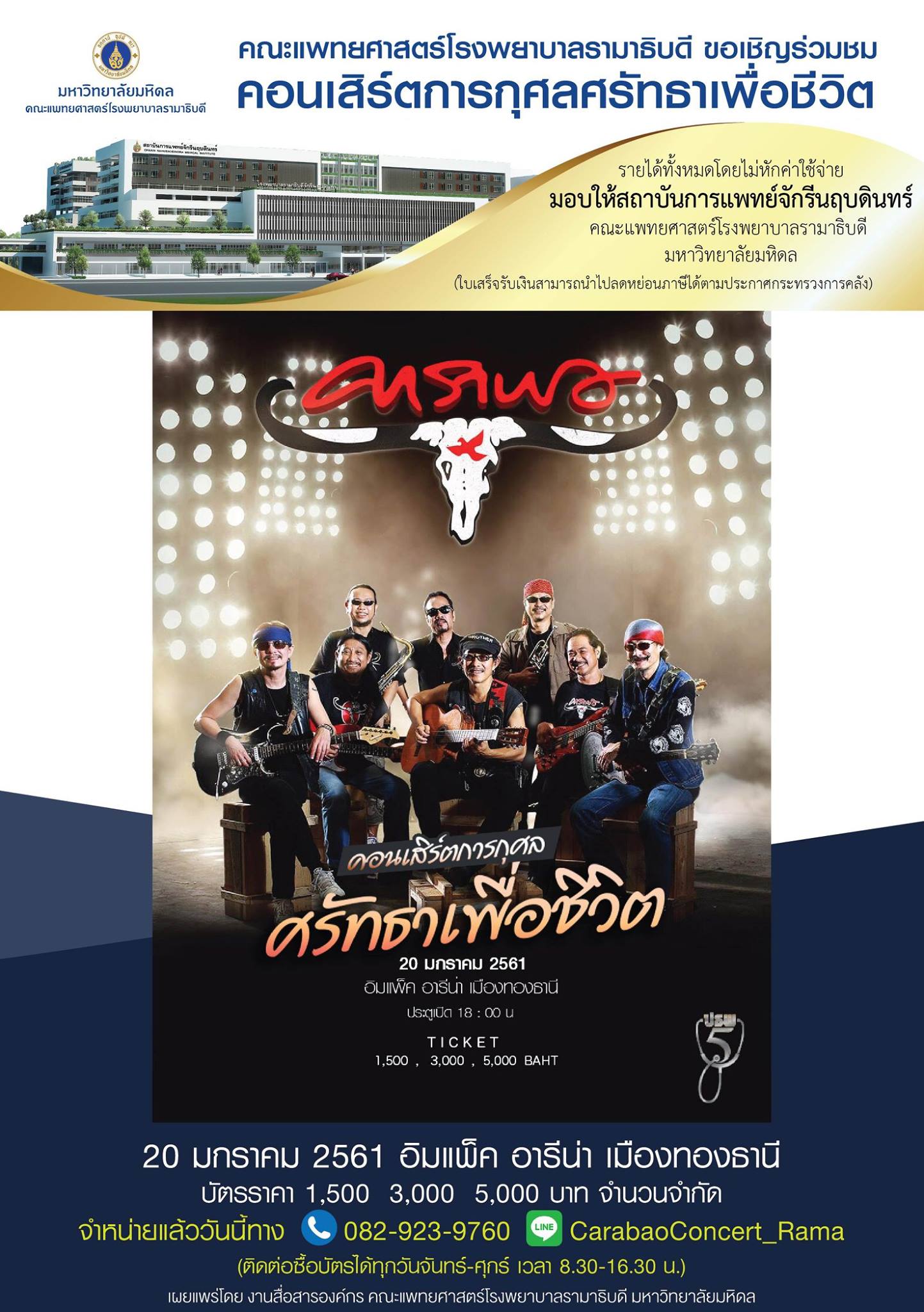 คณะแพทยศาสตร์โรงพยาบาลรามาธิบดี ขอเชิญร่วมชม คอนเสิร์ตการกุศลศรัทธาเพื่อชีวิต