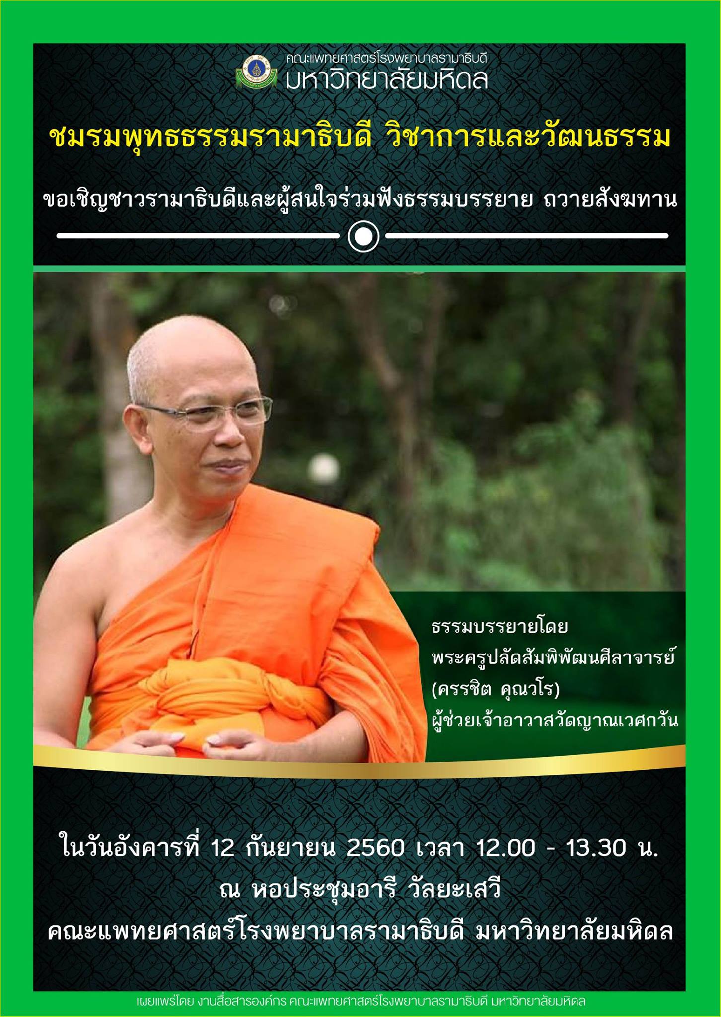ขอเชิญชาวรามาธิบดีและผู้สนใจร่วมฟังธรรมบรรยาย ถวายสังฆทาน