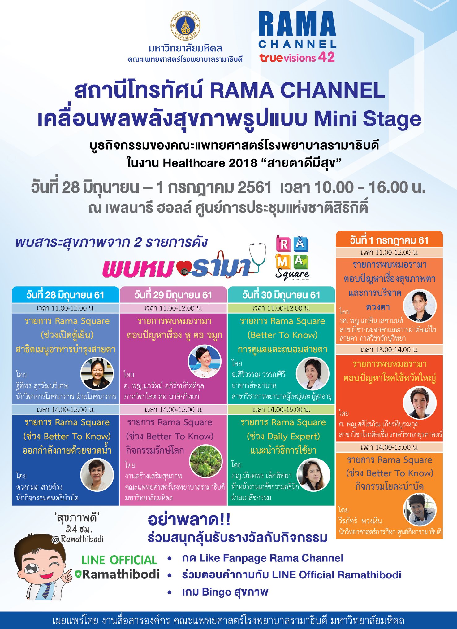 สถานีโทรทัศน์ RAMA CHANNEL เคลื่อนพลพลังสุขภาพรูปแบบ Mini Stage ในงาน Healthcare 2018