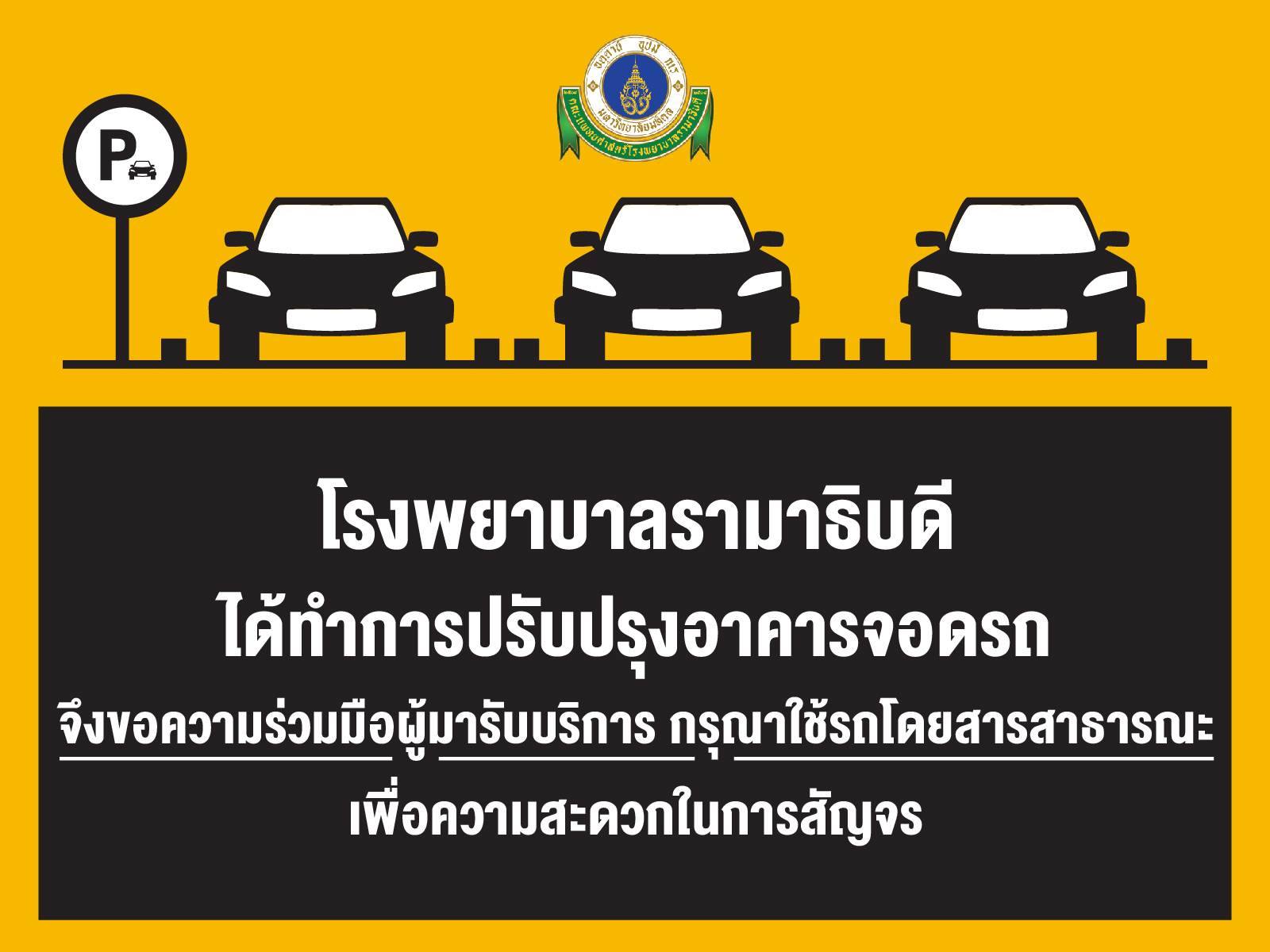 โรงพยาบาลรามาธิบดีได้ทำการปรับปรุงอาคารจอดรถ จึงขอความร่วมมือผู้มารับบริการ กรุณาใช้รถโดยสารสาธารณะ เพื่อความสะดวกในการสัญจร