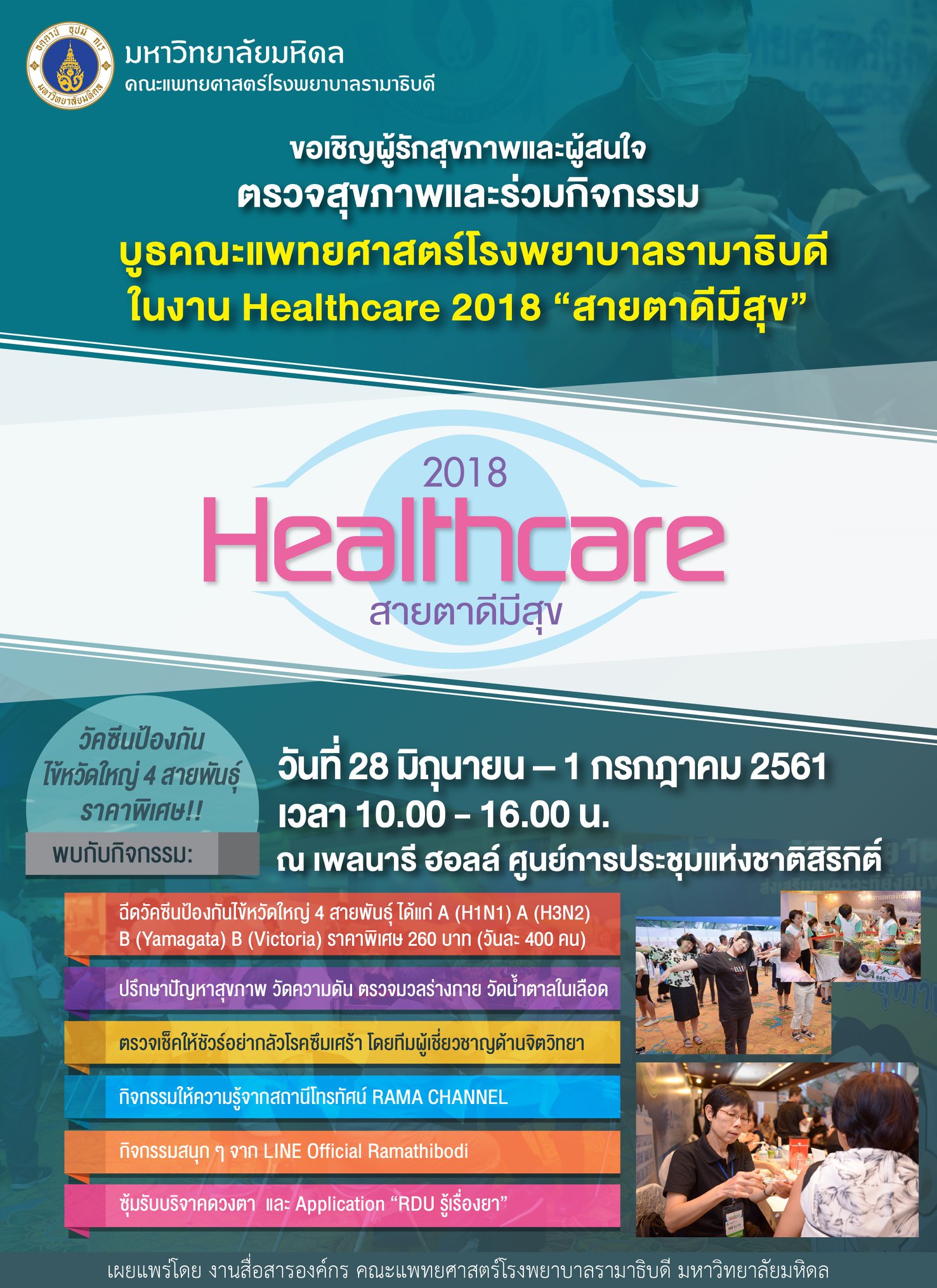บูธคณะแพทยศาสตร์โรงพยาบาลรามาธิบดี ในงาน Healthcare 2018 “สายตาดีมีสุข”