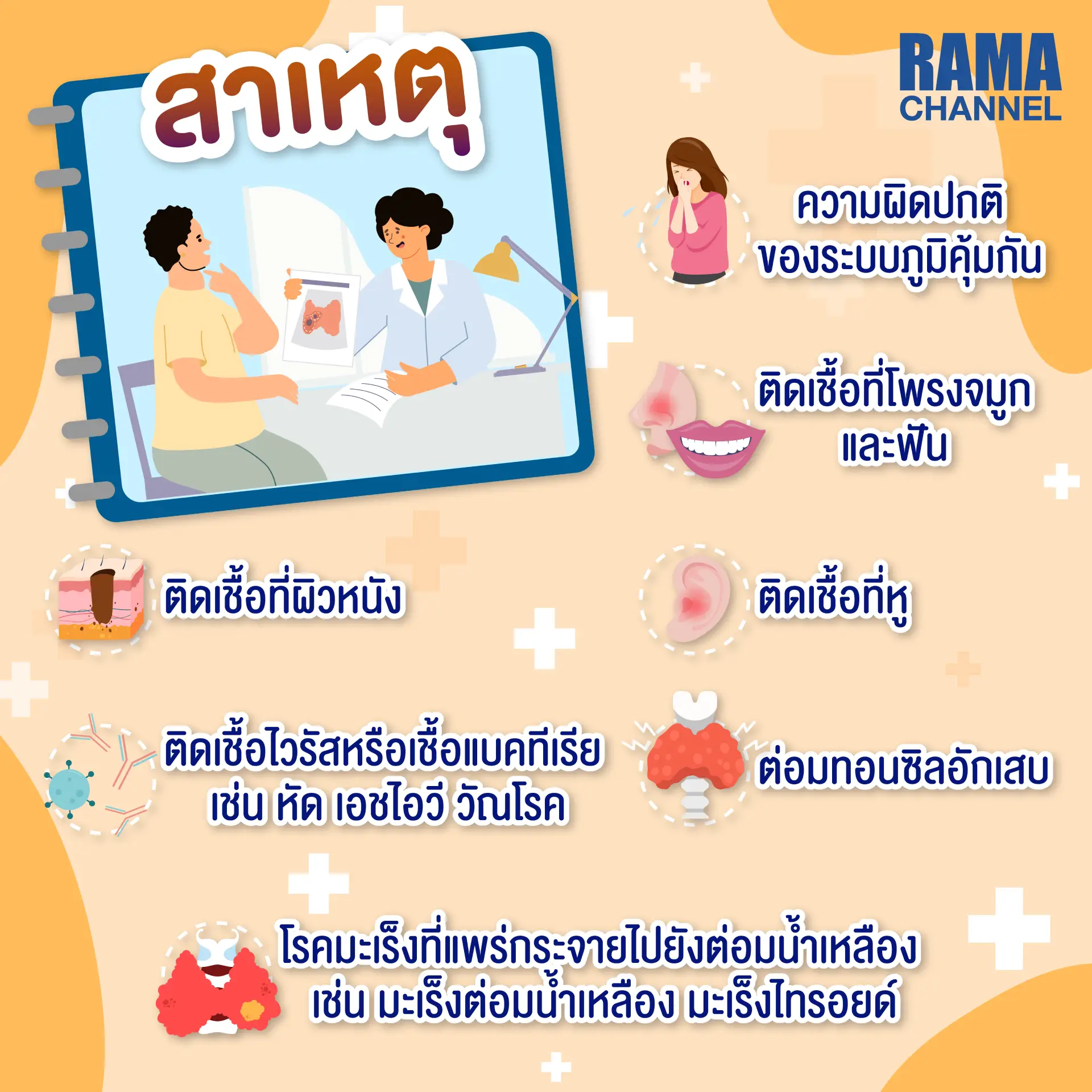 - โรคมะเร็งที่แพร่กระจายไปยังต่อมน้ำเหลือง เช่น มะเร็งต่อมน้ำเหลือง มะเร็งไทรอยด์