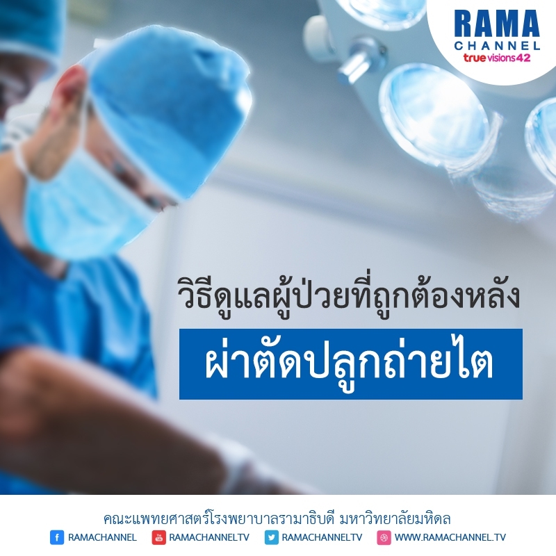 คลิกชมคลิปรายการ “วิธีการดูแลผู้ป่วย “ปลูกถ่ายไต”ที่ถูกต้อง : Rama Square ช่วง นัดกับ Nurse” ได้ที่นี่