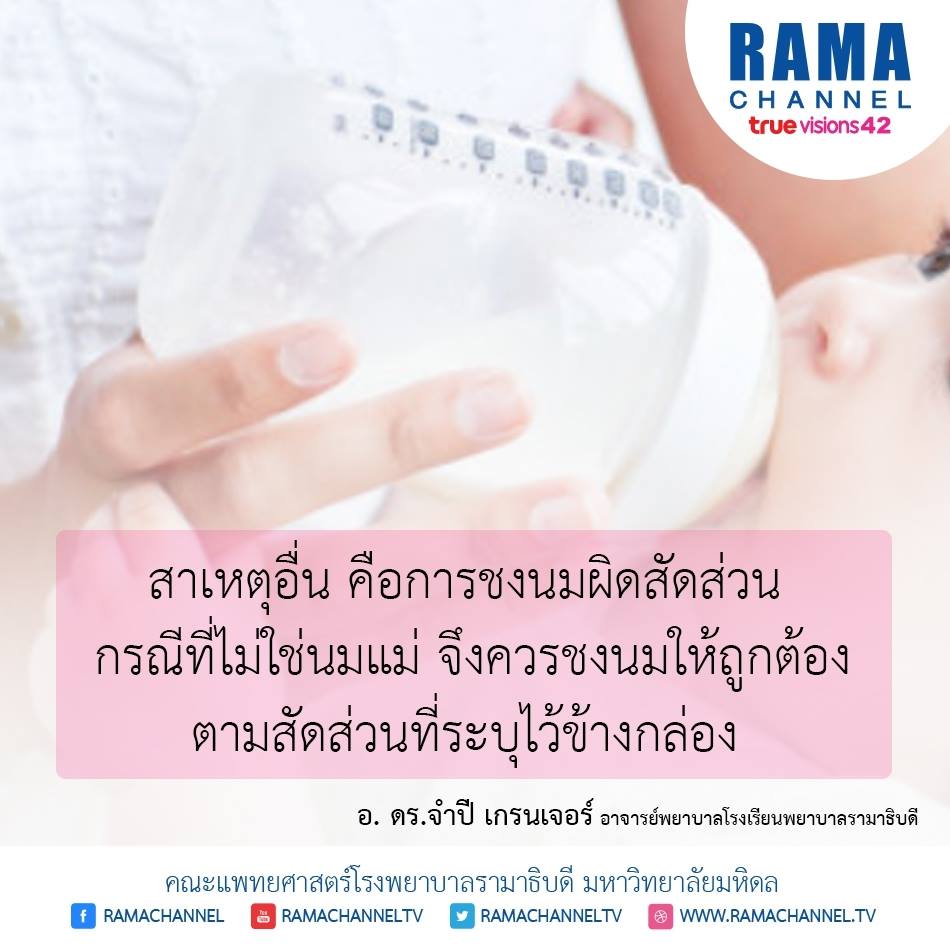สาเหตุอื่น คือการชงนมผิดสัดส่วน กรณีที่ไม่ใช่นมแม่ จึงควรชงนมให้ถูกต้องตามสัดส่วนที่ระบุไว้ข้างกล่อง