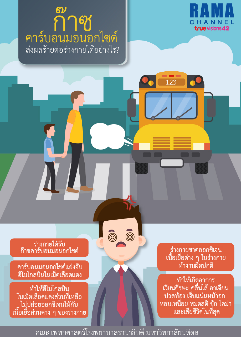 - ร่างกายได้รับก๊าซคาร์บอนมอนอกไซด์
