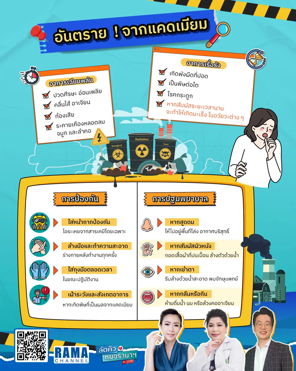 รับชมข้อมูลเพิ่มเติมได้ที่ – ลัดคิวหมอ – ทำความรู้จัก แคดเมียม แร่โลหะที่เป็นพิษต่อร่างกาย 03/05/67 | by RAMA Channel