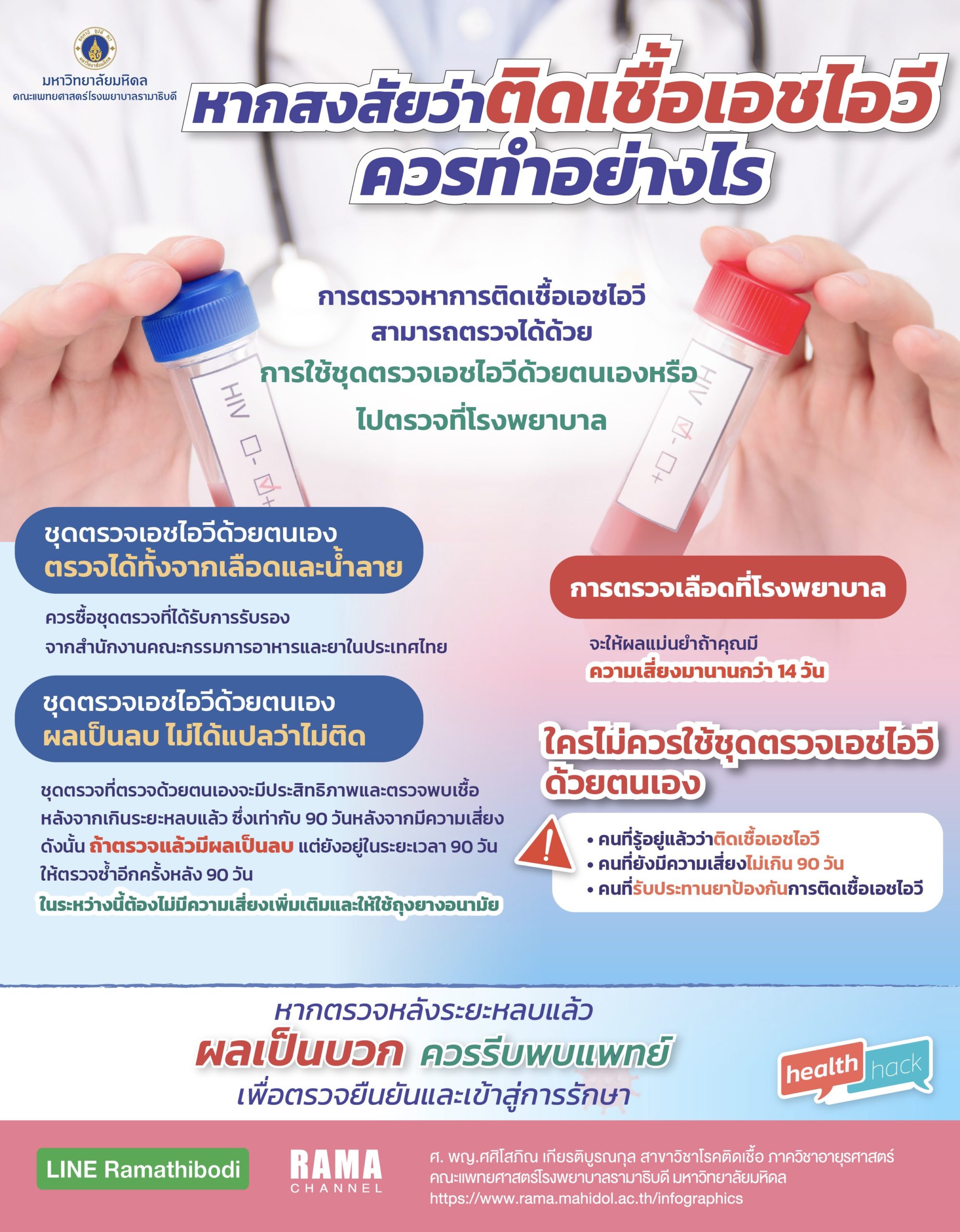 📌หากใช้ชุดตรวจเอชไอวีด้วยตนเองแล้วผลเป็นบวก ควรรีบพบแพทย์เพื่อตรวจยืนยันและเข้าสู่การรักษา
