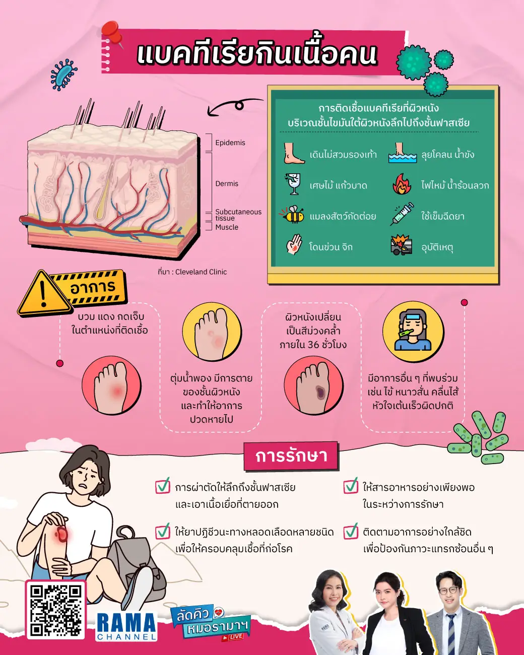 รับชมข้อมูลเพิ่มเติมได้ที่ – ลัดคิวหมอ – โรคแบคทีเรียกินเนื้อคน รู้ก่อนรักษาได้ก่อนอันตรายถึงชีวิต 07/05/67 | by RAMA Channel