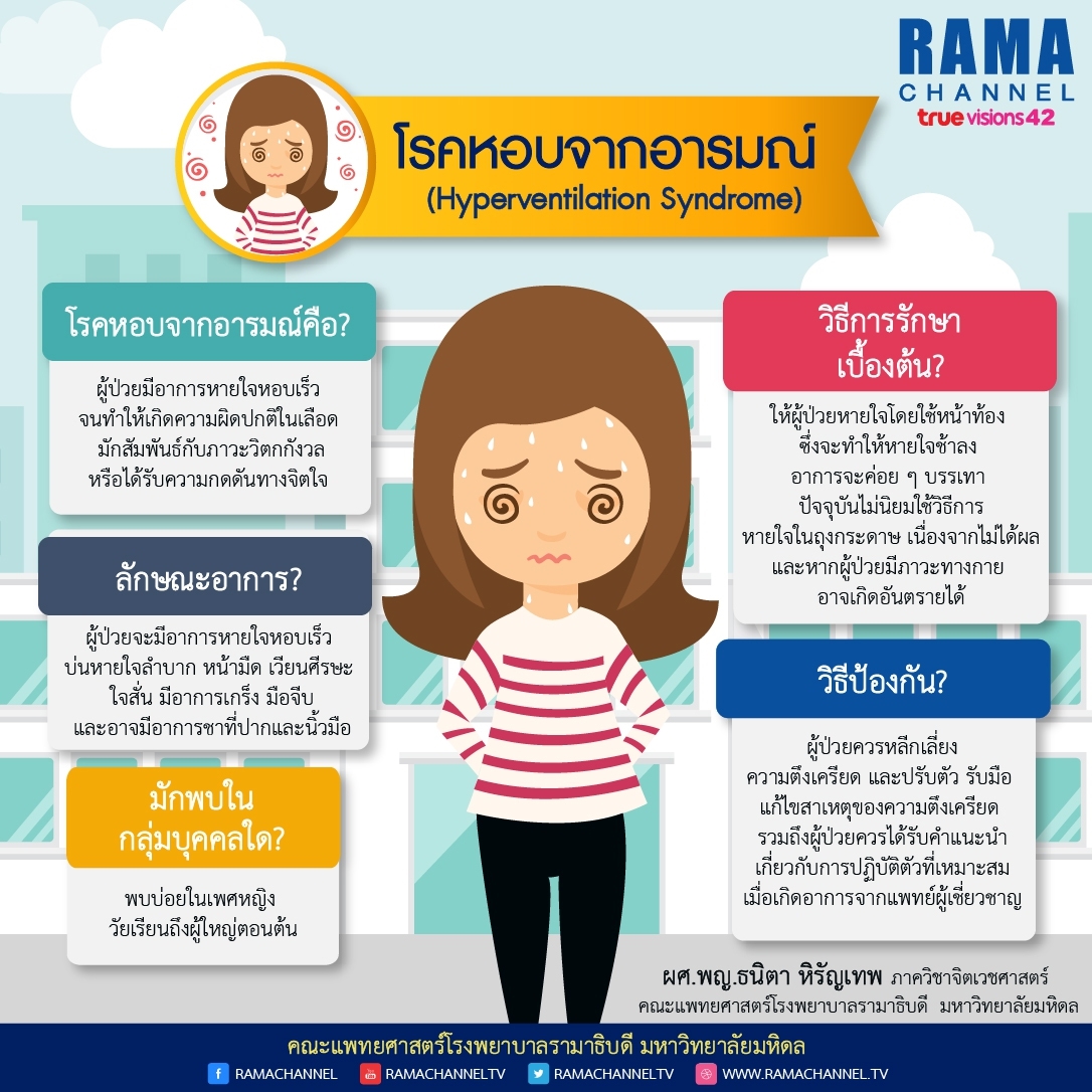 ผู้ป่วยมีอาการหายใจหอบเร็ว จนทำให้เกิดความผิดปกติในเลือดมักสัมพันธ์กับภาวะจิตตกกังวล หรือได้รับความกดดันทางจิตใจ