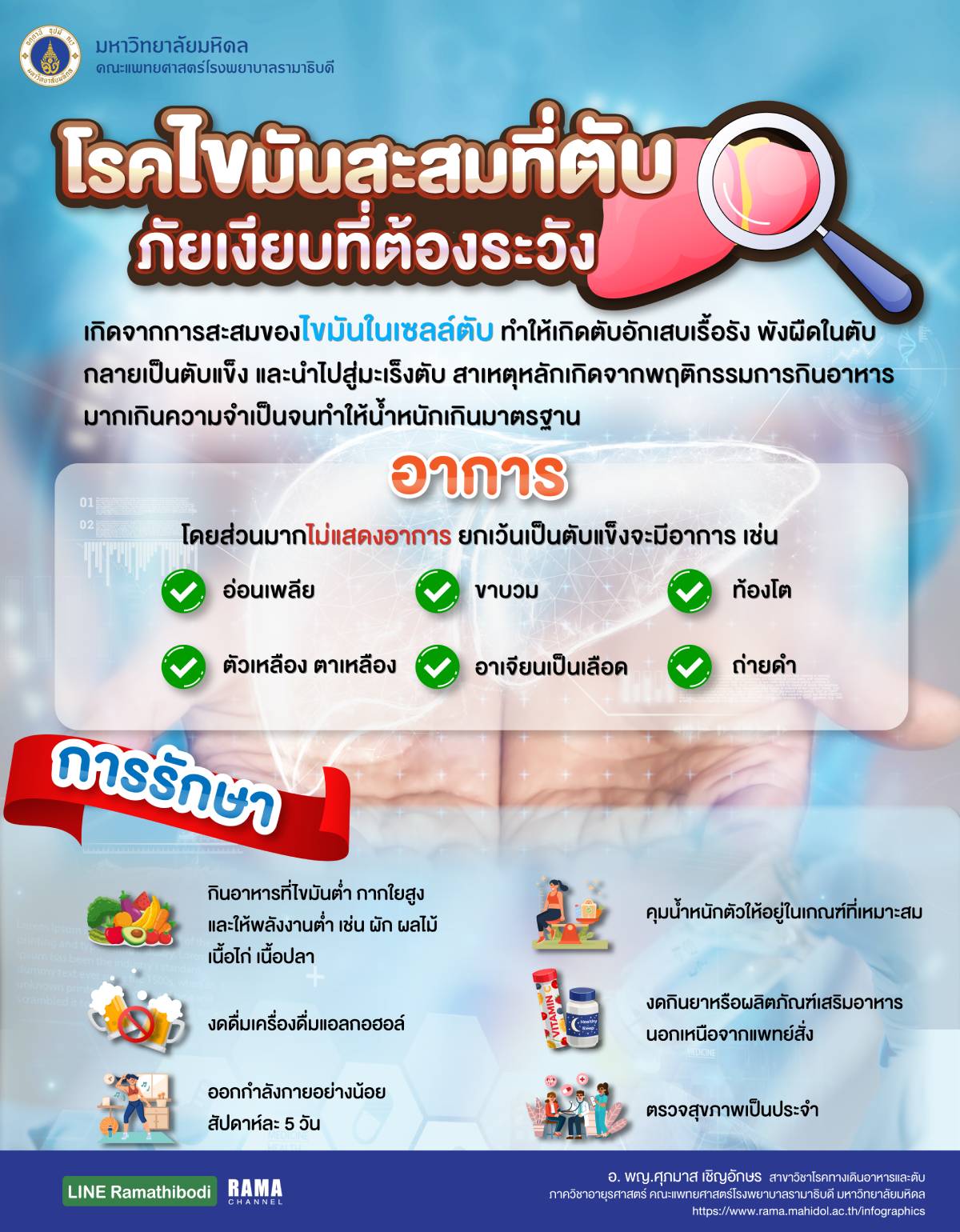 เกิดจากการสะสมของ ไขมันในเซลล์ตับ ทำให้เกิดตับอักเสบเรื้อรัง พังผืดในตับกลายเป็นตับแข็ง และนำไปสู่มะเร็งตับ สาเหตุหลักเกิดจากพฤติกรรมการกินอาหารมากเกินความจำเป็นจนทำให้น้ำหนักเกินมาตรฐาน