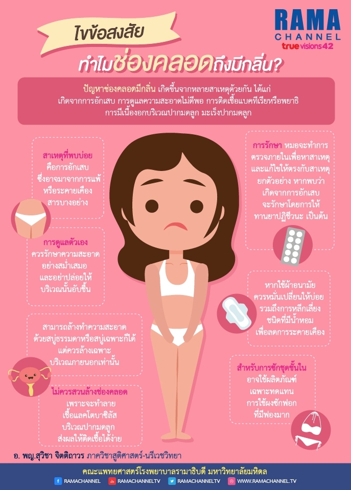 คลิกชมคลิปรายการ “ช่องคลอดมีกลิ่น เกิดจากสาเหตุอะไร รักษาอย่างไร : พบหมอรามา ช่วง Rama Update” ได้ที่นี่