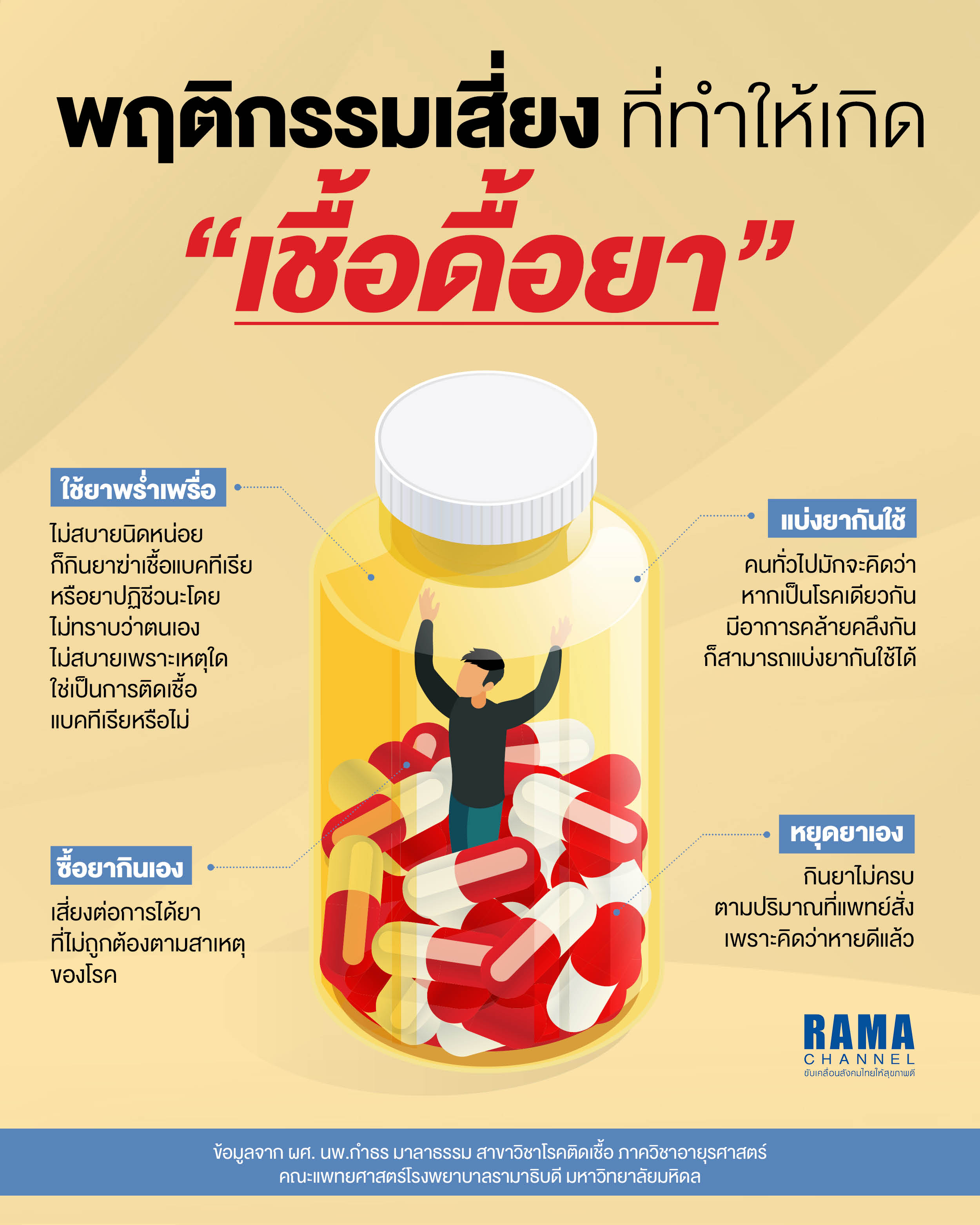 อย่างแรกต้องปรับความเข้าใจกันใหม่กับคำว่า “ดื้อยา” ไม่ได้หมายความว่าร่างกายของเราดื้อยา แต่มันคือการดื้อยาของ “เชื้อโรค” เรียกว่า “เชื้อดื้อยา” นอกจากนี้ยังมีสาเหตุอื่น ๆ ที่ทำให้เกิดเชื้อดื้อยาจากพฤติกรรมของคนเราอีกด้วย เช่น