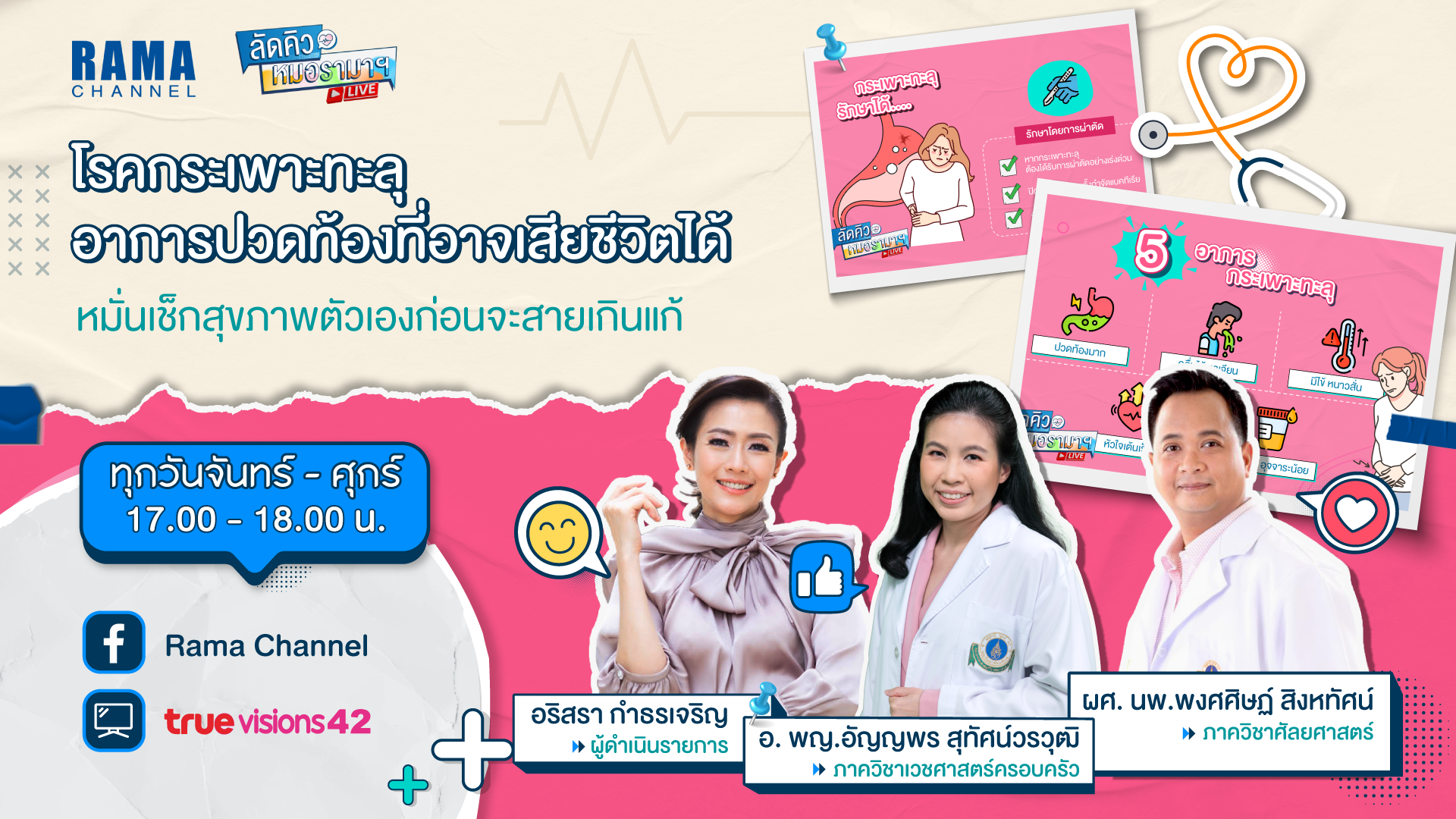 ติดตามเรื่องราวได้ในรายการลัดคิวหมอรามาฯ รายการที่คุณสามารถแช็ตถาม หรือโทรถามหมอแบบสด ๆ ได้โดยไม่ต้องต่อคิว