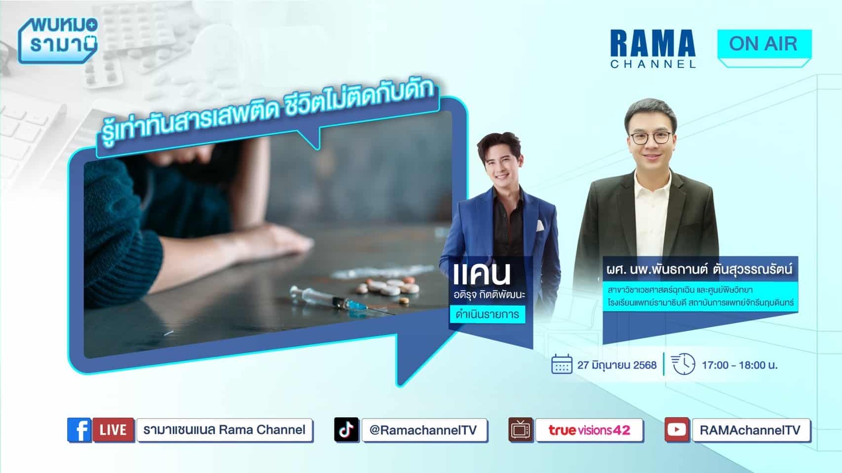 รู้เท่าทันสารเสพติด ชีวิตไม่ติดกับดัก โดย โดย ผศ. นพ.พันธกานต์ ตันสุวรรณรัตน์ สาขาวิชาเวชศาสตร์ฉุกเฉิน และศูนย์พิษวิทยา โรงเรียนแพทย์รามาธิบดี สถาบันการแพทย์จักรีนฤบดินทร์