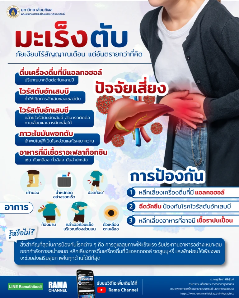 มะเร็งตับเป็นภัยเงียบที่มักไม่มีสัญญาณเตือนในระยะแรก เกิดจากไวรัสตับอักเสบ การดื่มแอลกอฮอล์ หรือสารพิษ ควรตรวจสุขภาพตับเป็นประจำ