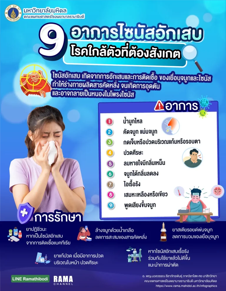 อาการคล้ายกับไข้หวัด มีน้ำมูก และเสมหะอยู่ตลอดเวลา อาการเหล่านี้อาจเสี่ยงเป็น ไซนัสอักเสบ โรคที่สามารถพบได้บ่อยในช่วงที่มีอากาศชื้น