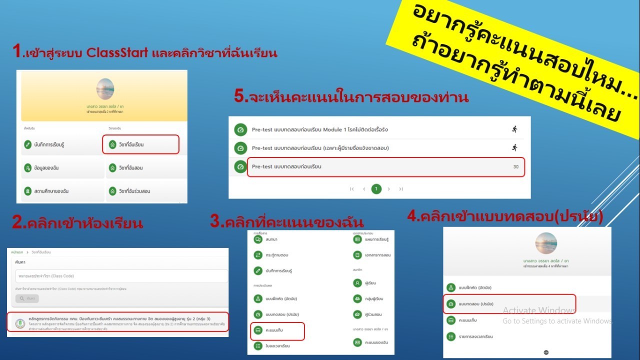 ClassStart วิธีการเข้าดูคะแนนสอบ