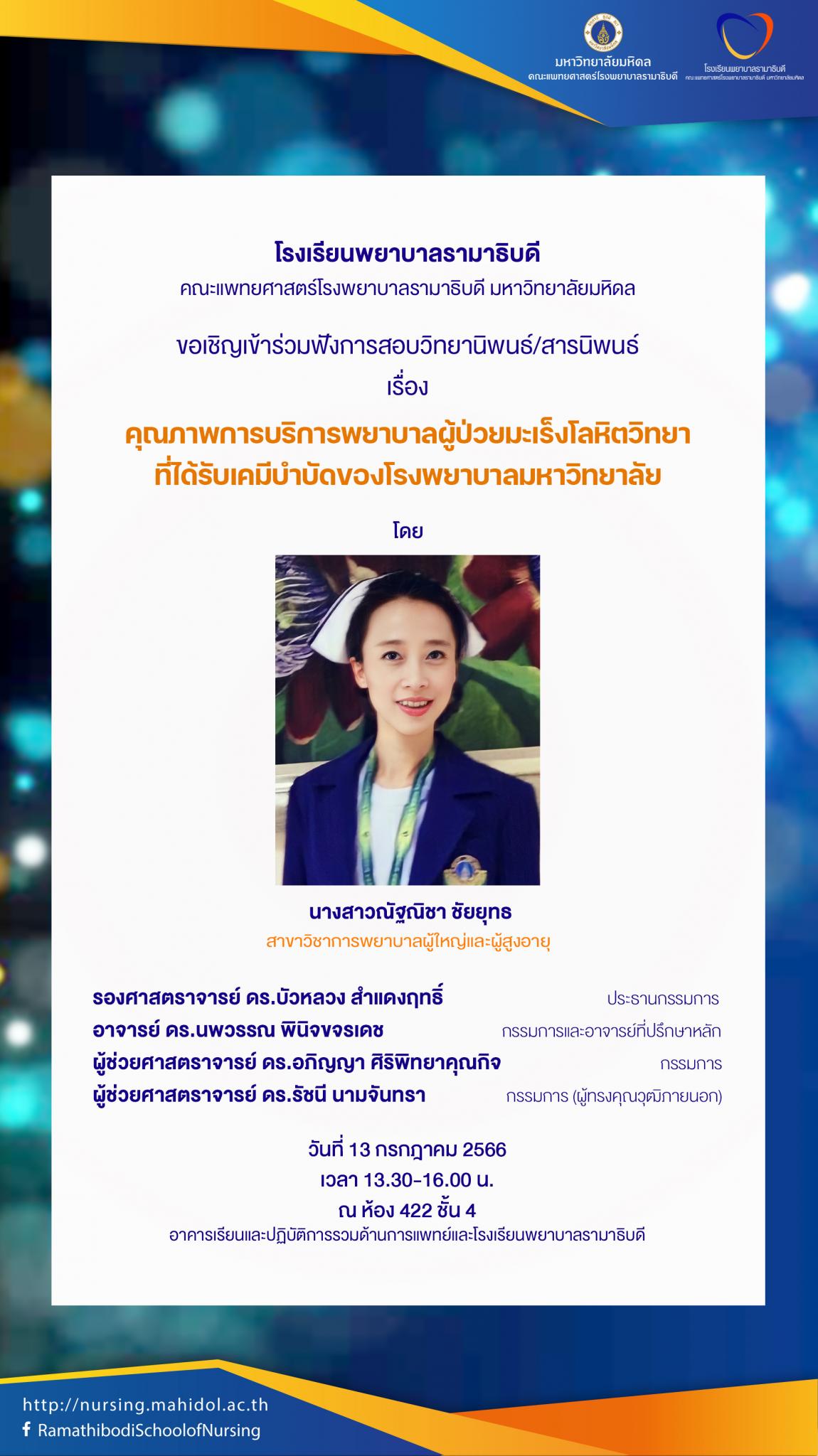 ขอเชิญเข้าร่วมฟังการสอบวิทยานิพนธ์/สารนิพนธ์